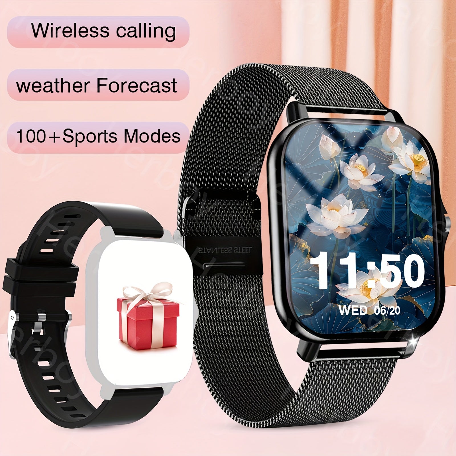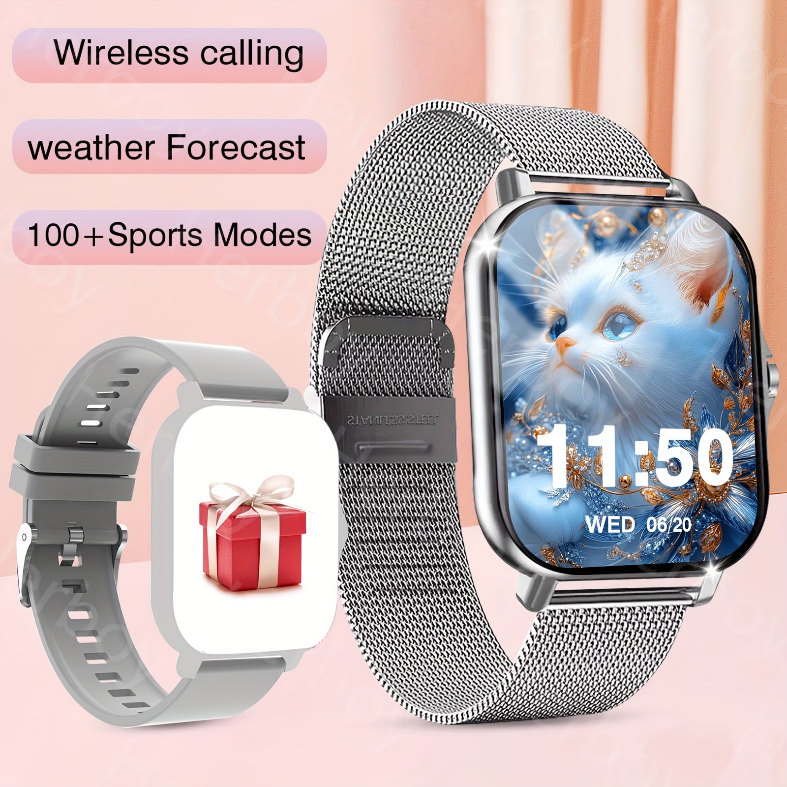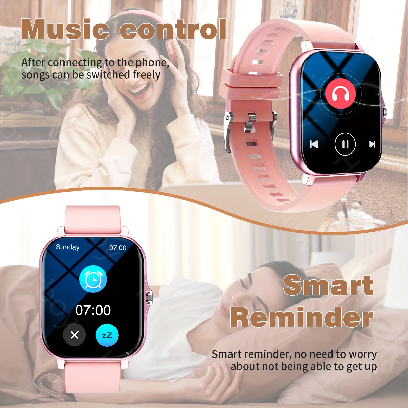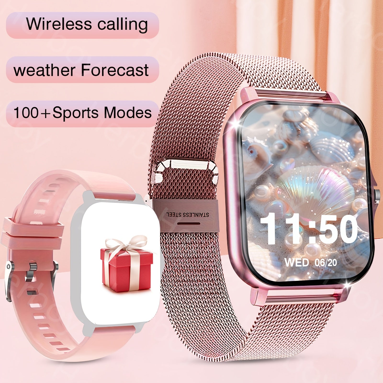 2025 Smart Watch with Wireless Calls SMS Notifications Fitness Tracker Pink Silicone Band Compatible with iPhone Android