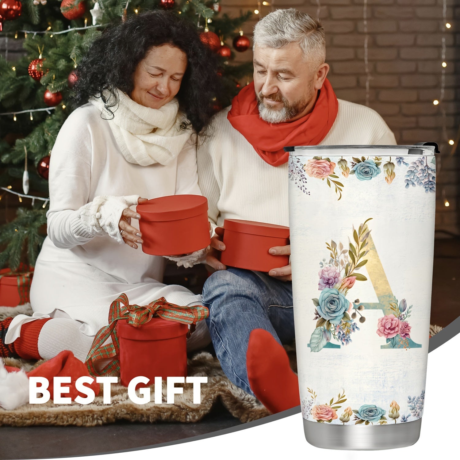 20oz Stainless Steel Tumbler with Monogram Floral Design Leak Proof Lid for Outdoor Use