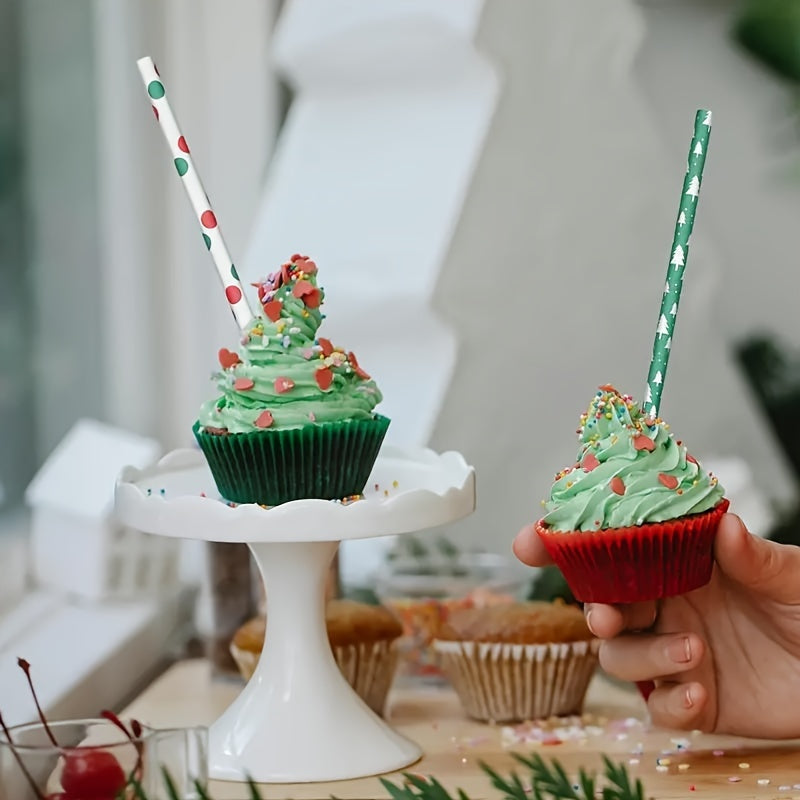 25 Pieces Christmas Paper Straws Snowflake Tree Patterns Biodegradable Holiday Party Supplies