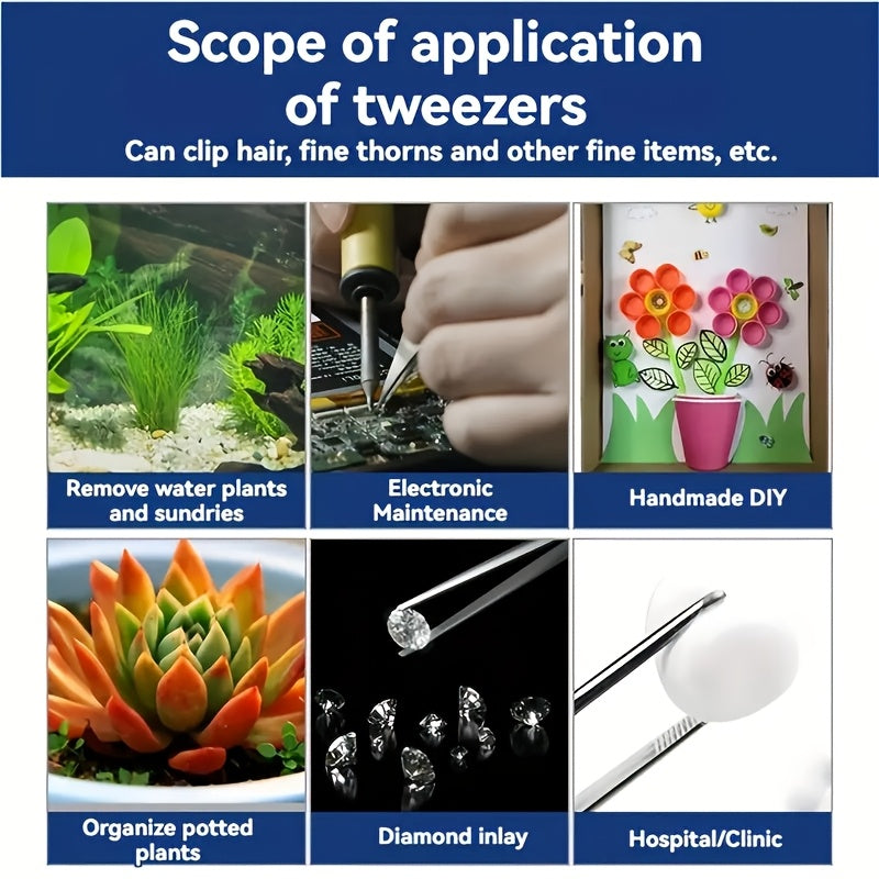 2pc Stainless Steel Tweezers Set for Cooking Grilling Bonsai Jewelry Making Long Durable Anti-Slip