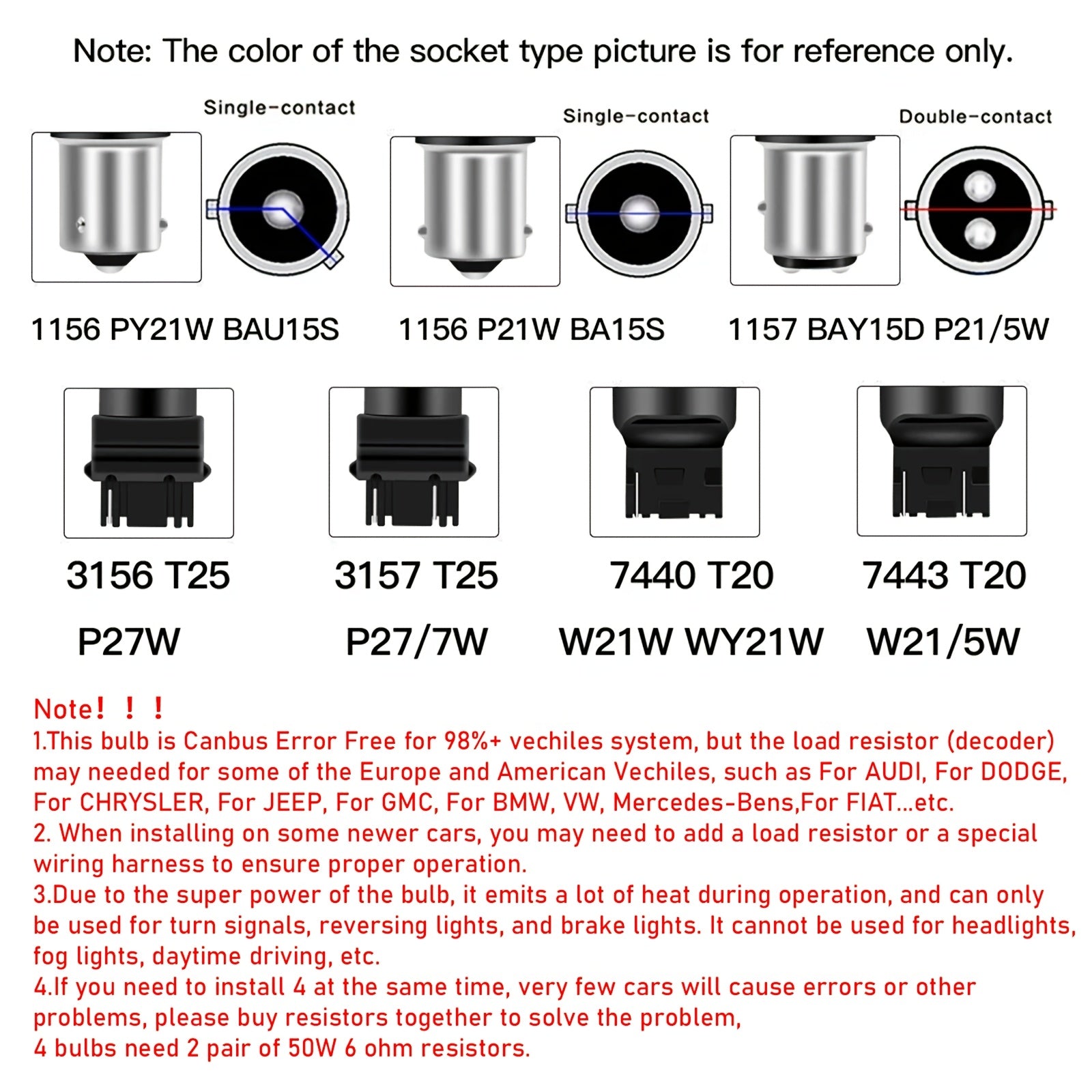 2Pcs Bright LED Bulbs 1156 BA15S Canbus Car Brake Reverse Turn Signal