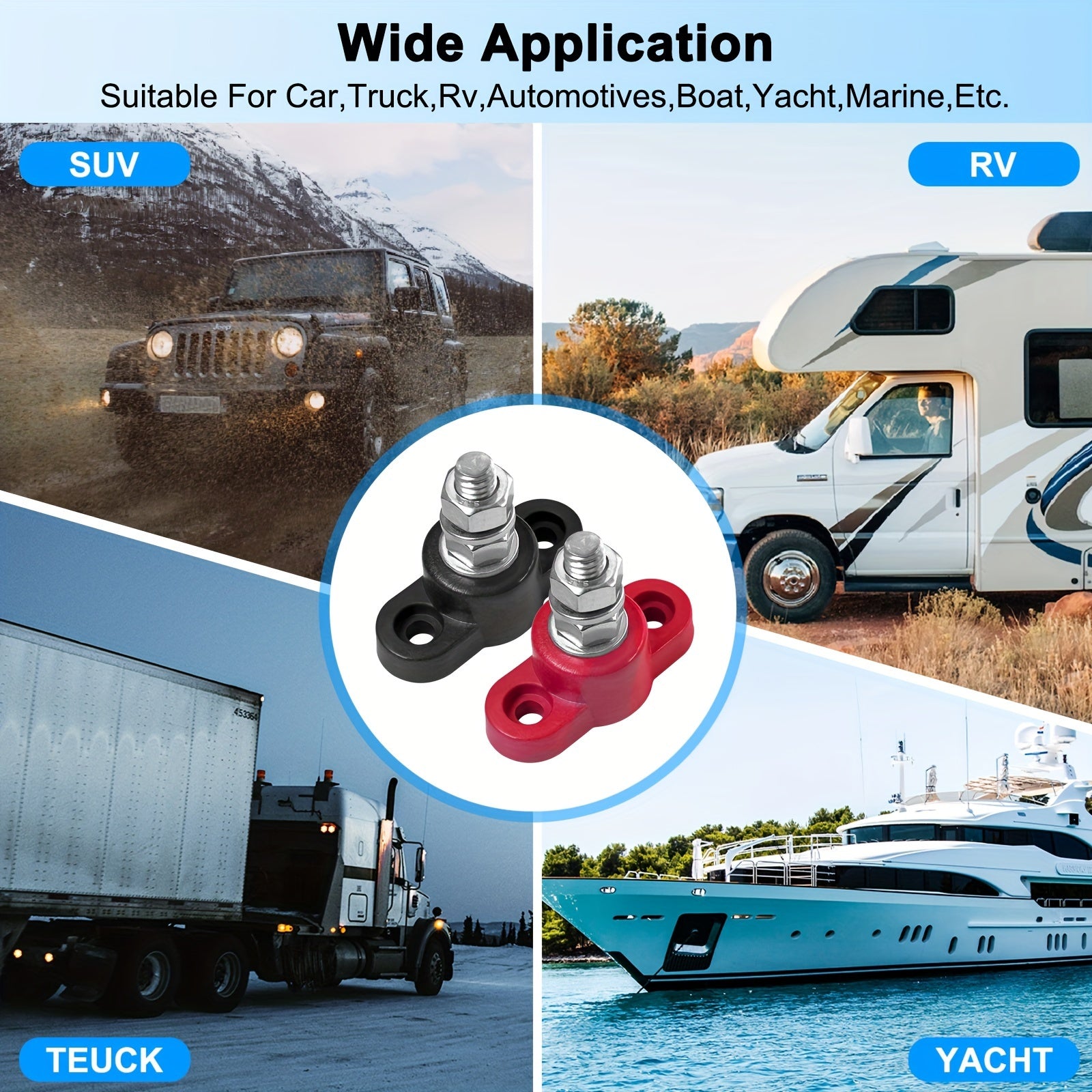 2pcs Heavy Duty Battery Junction Posts Block Power Ground Distribution Terminal Kit Red Black