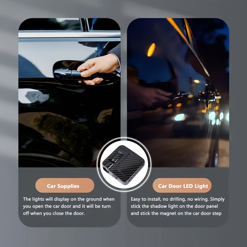 2Pcs LED Car Door Welcome Lights Black Textured Battery Operated Easy Install