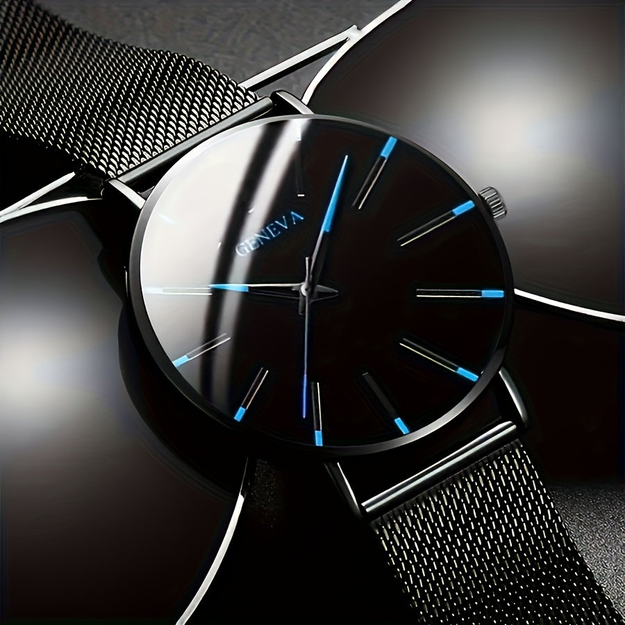 Men's Quartz Watch and Leather Bracelet Set Shock-Resistant Analog Round Case Fashionable