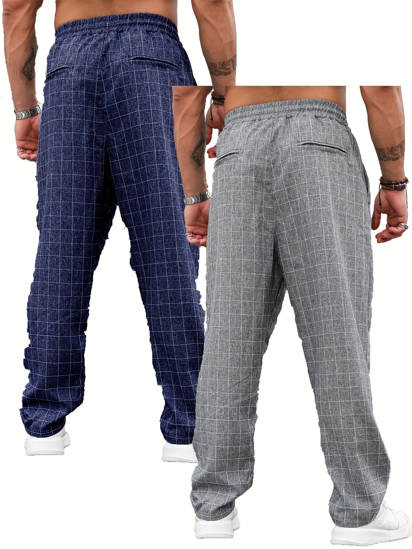 Plus Size Men's Casual Plaid Polyester Pants Set of 2 All-Season