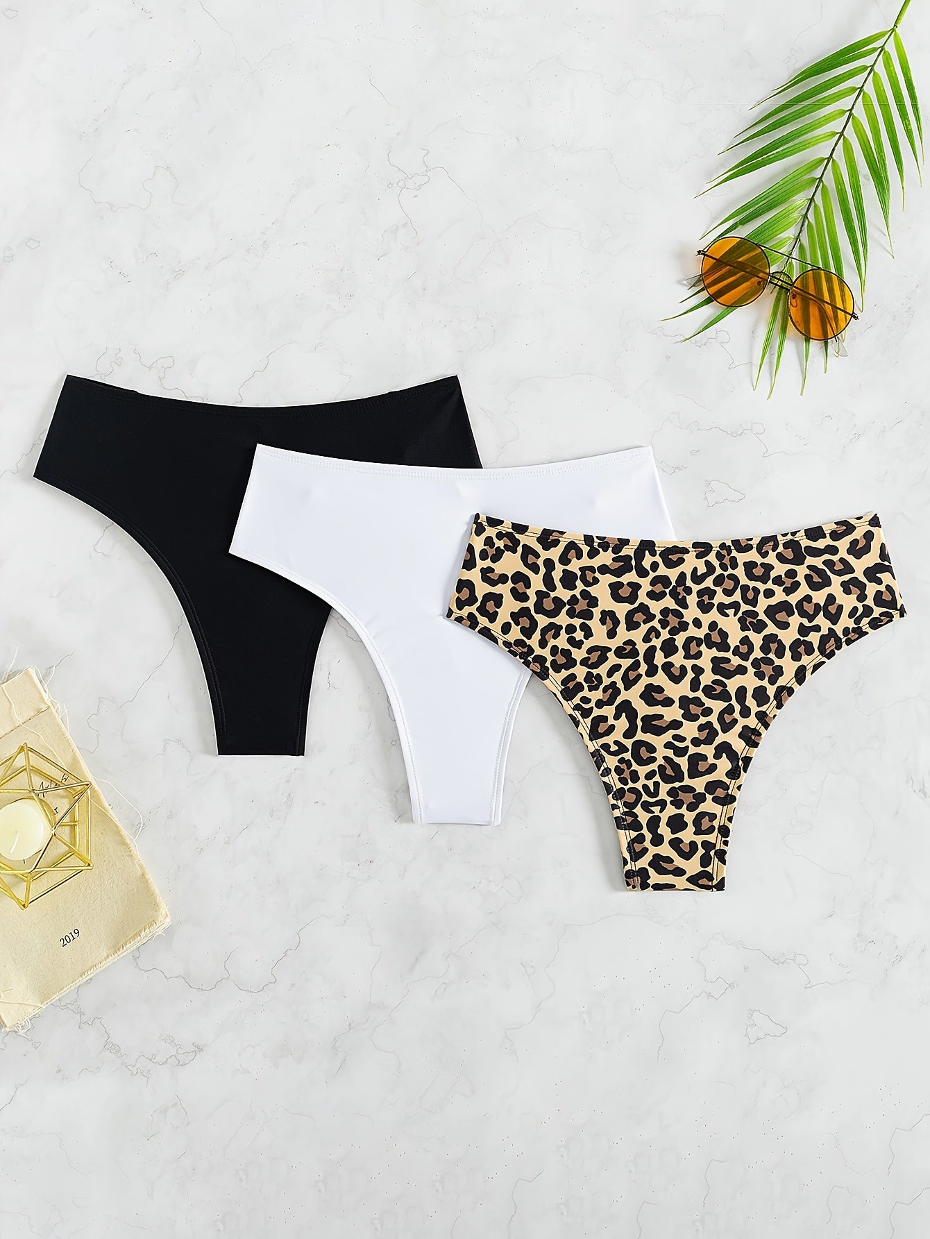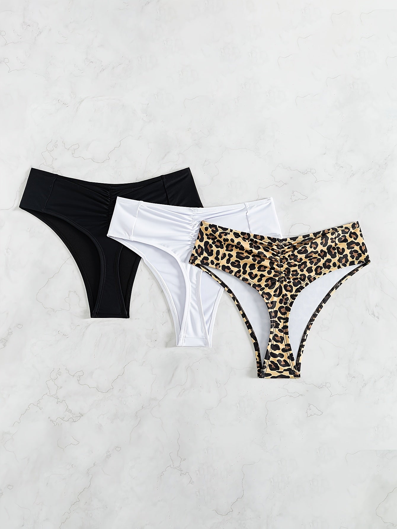 Women's High Stretch Nylon Thongs Solid Color Ruched Pack of 3