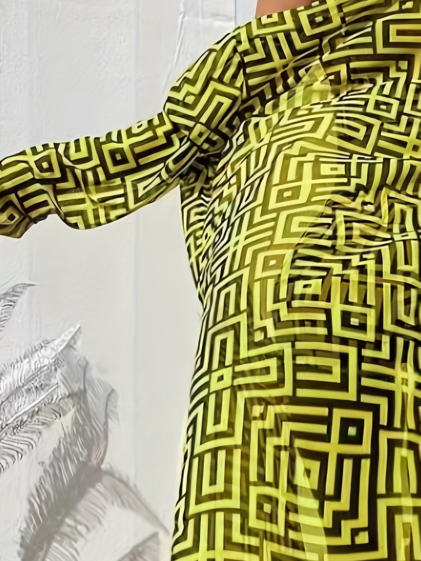 Women's Tankini Set with Geometric Print Off-Shoulder Top High-Waisted Bottoms and Cover-Up Kimono in Yellow and Black