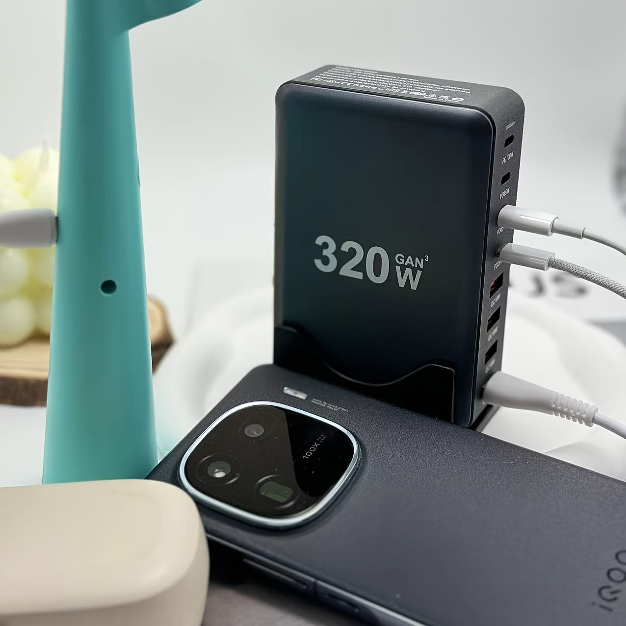 320W GaN III USB-C Charger with 8 Ports Fast Charging for MacBook iPad Samsung European Plug