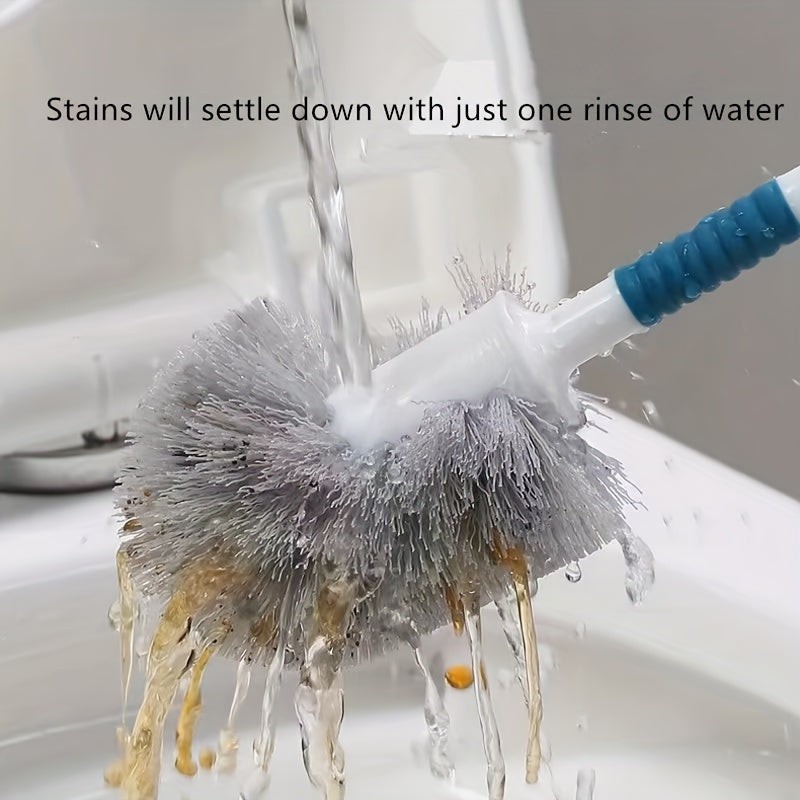 360 Degree Curved Handle Toilet Brush Set Hemispherical Brush Head Wall Mount or Floor Storage