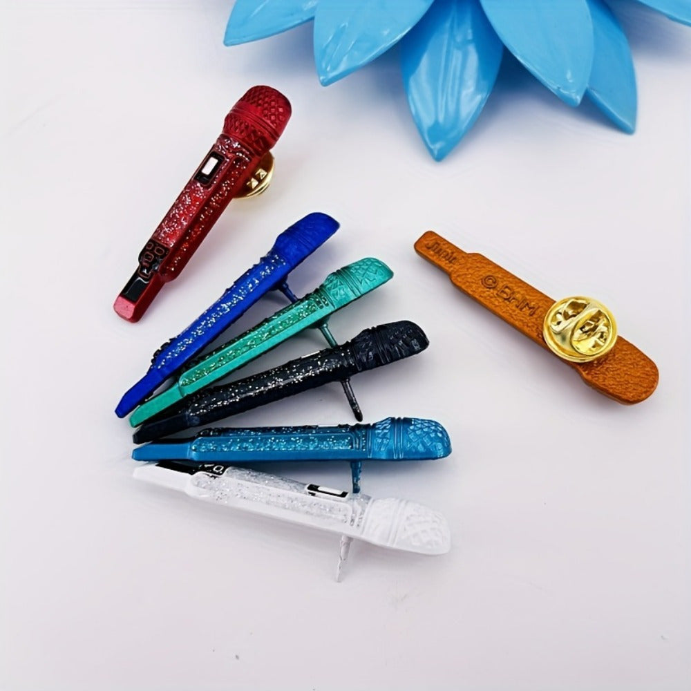 3D Microphone Brooch Pin Alloy Metal Party Accessory Movie-Star Collection Battery-Free