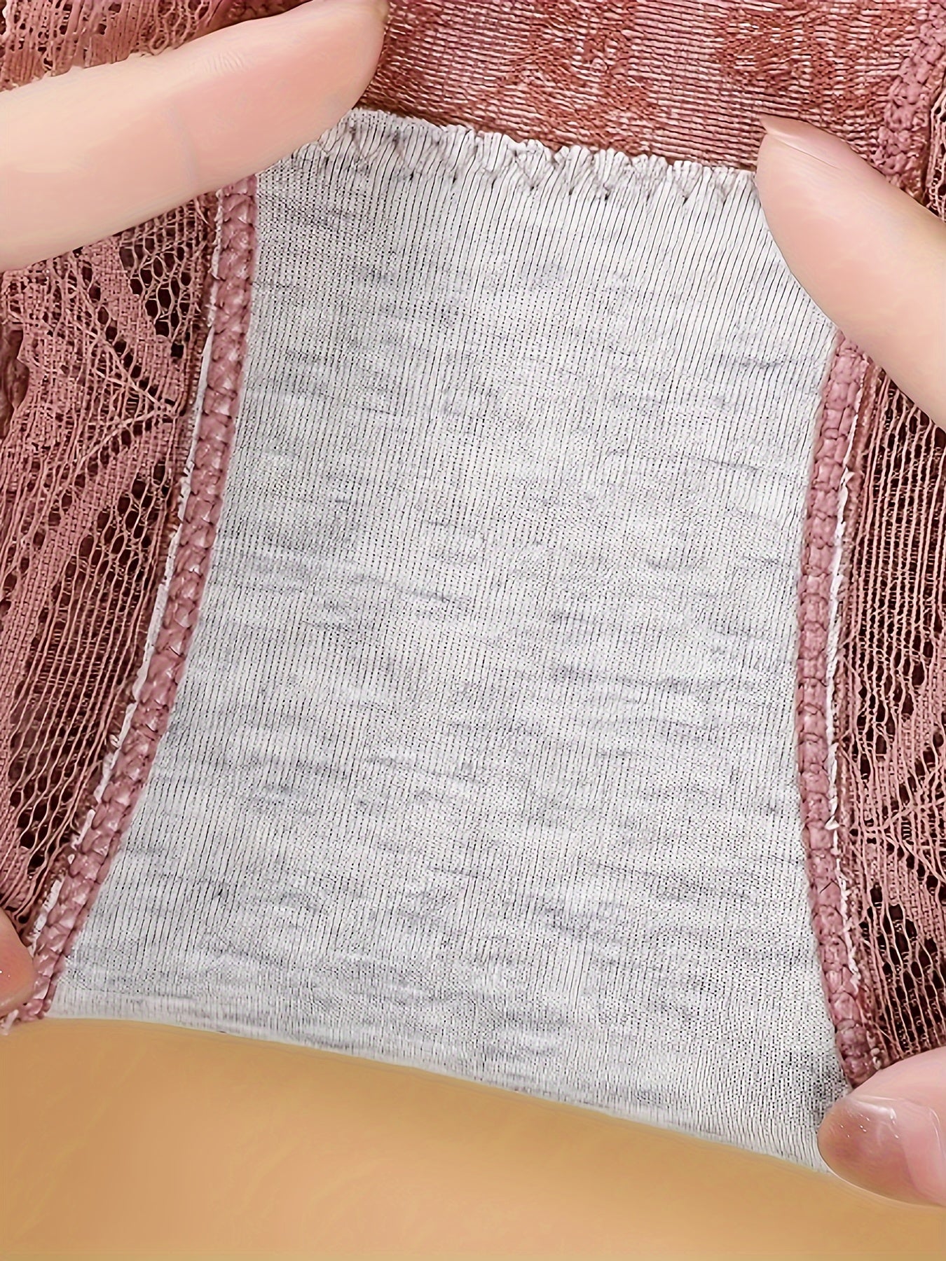 3Pcs Floral Lace Women's Seamless Panties with Bow in Light Purple Blue Lavender