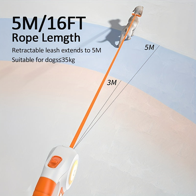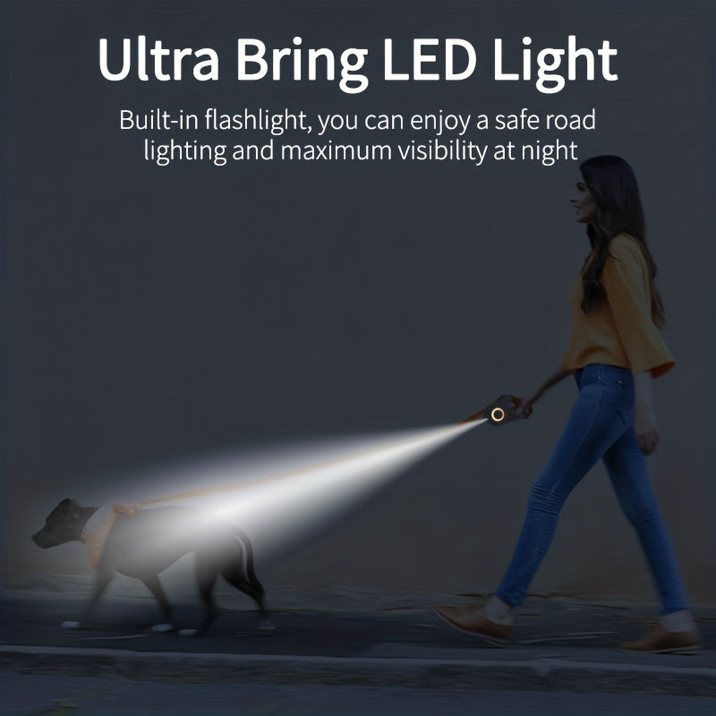 Retractable Dog Leash 16 Feet Nylon with LED Flashlight Hands-Free Lock and Brake