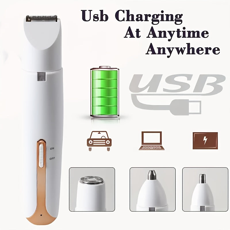Women's 4-in-1 Electric Epilator Set USB Rechargeable Gentle Portable for Brows Face Legs