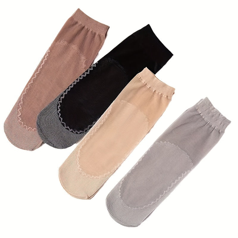 Women's Mesh Socks 4 Pairs Non-Slip Sweat-Absorbing Flesh-Colored Short