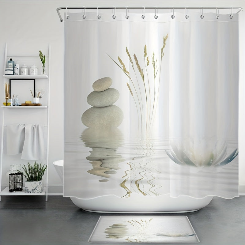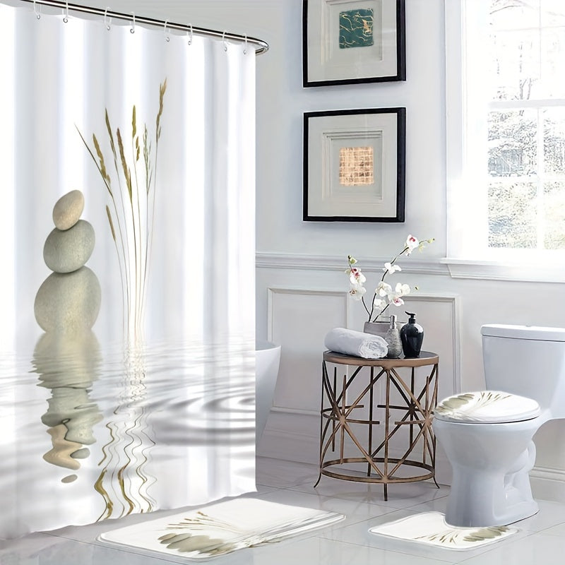 4-Piece Shower Curtain Set Waterproof Non-Slip Rugs Bath Mat Toilet Lid Cover 180x180cm