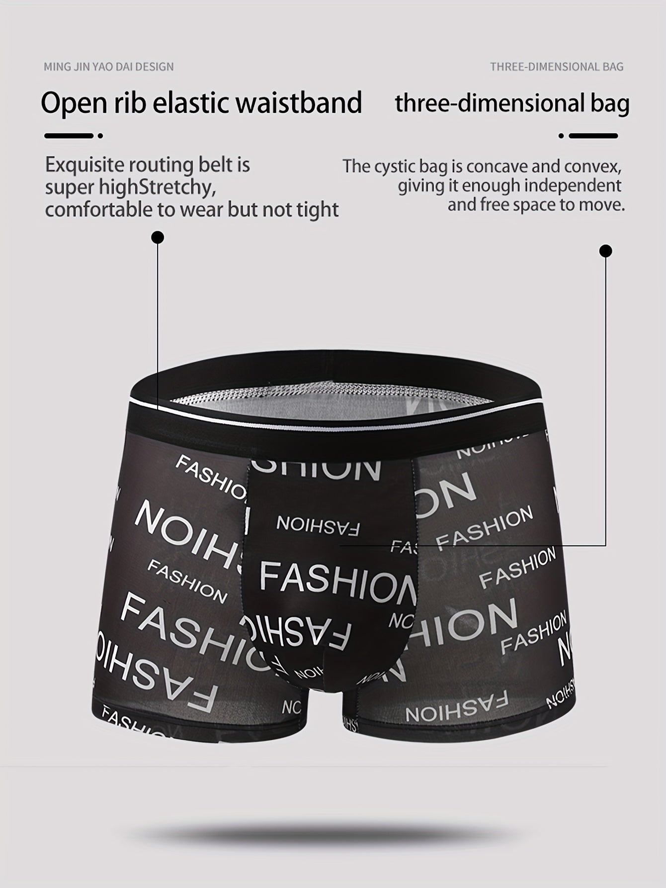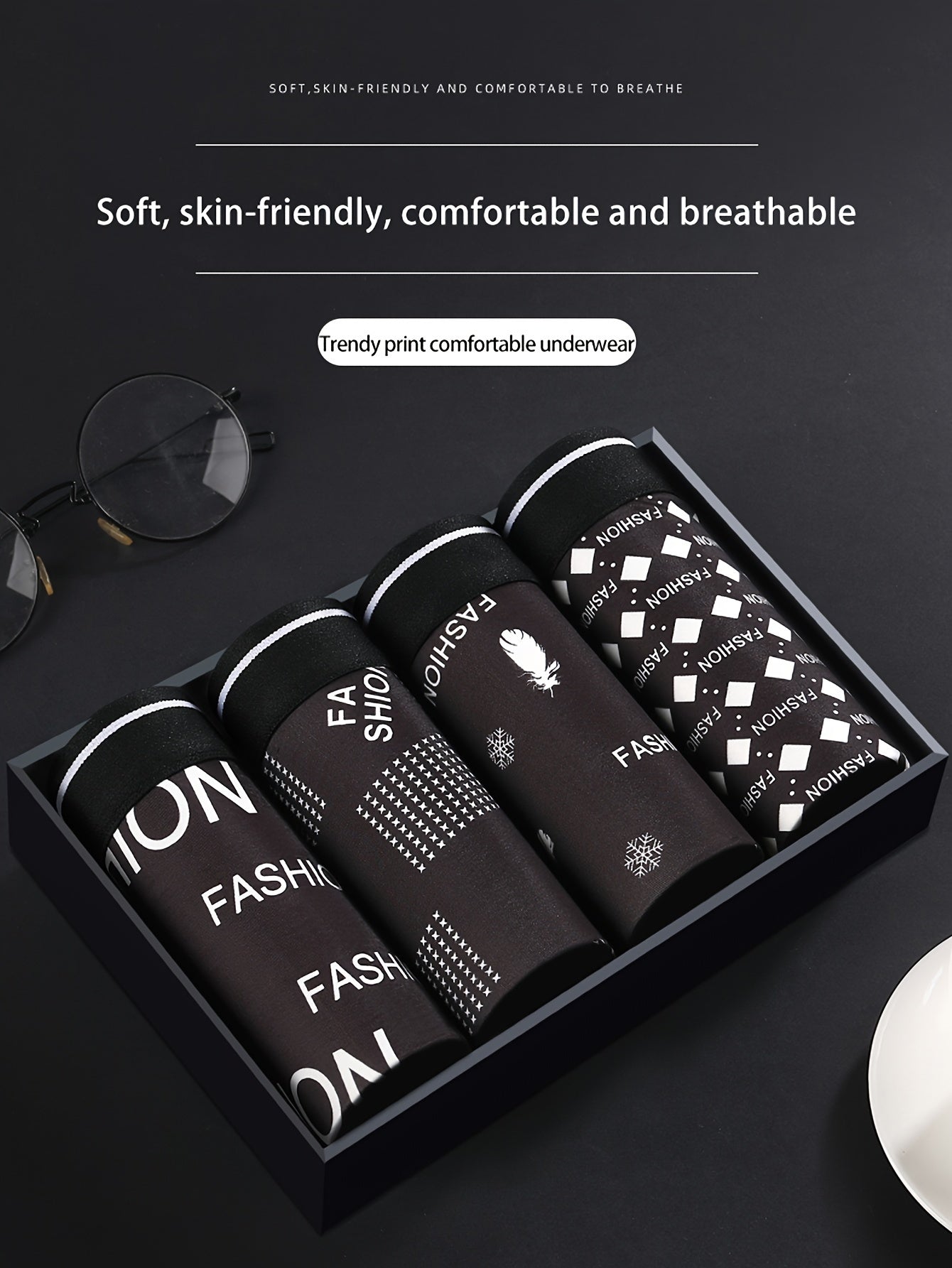 Men's Boxer Briefs 4 Pack Breathable Letter Print Polyester Spandex Knit Underwear