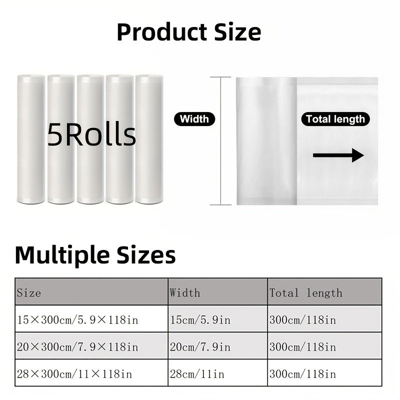 5-Pack BPA-Free Vacuum Seal Bags 3M Long Food Preservation Sous Vide Storage
