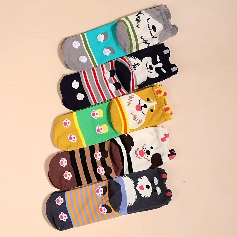 Men's Mid-Calf Socks Large Size Animal Pattern Knit Polyester Harajuku Style 5 Pairs