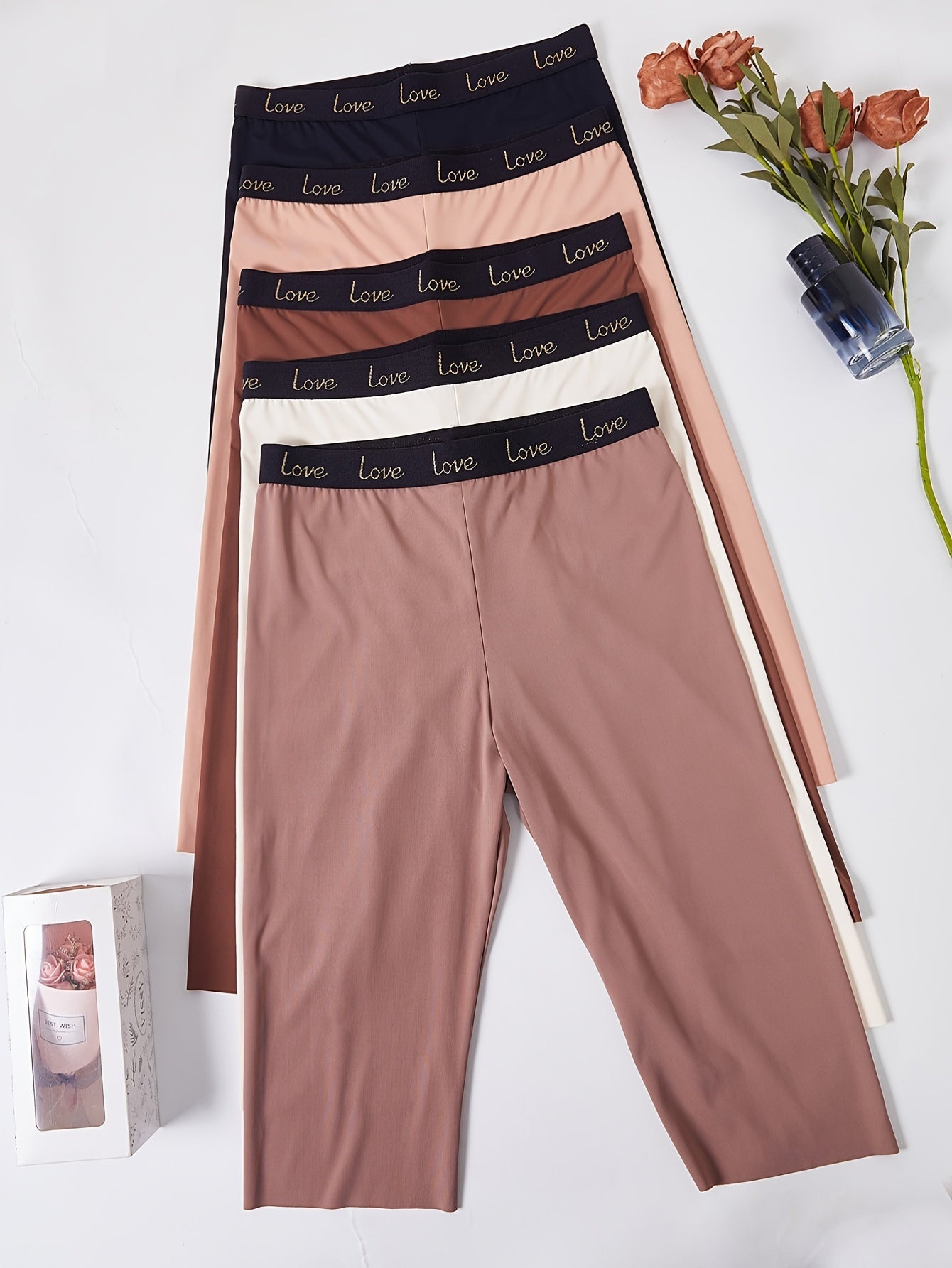 Women's Seamless High-Waisted Shaping Shorts with Alphabet Pattern Tummy Control Compression Underwear 5 Pack