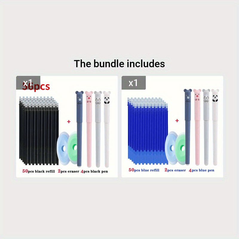 56-Piece Kawaii Panda Erasable Gel Pen Set Refillable Washable Stationery for School Office