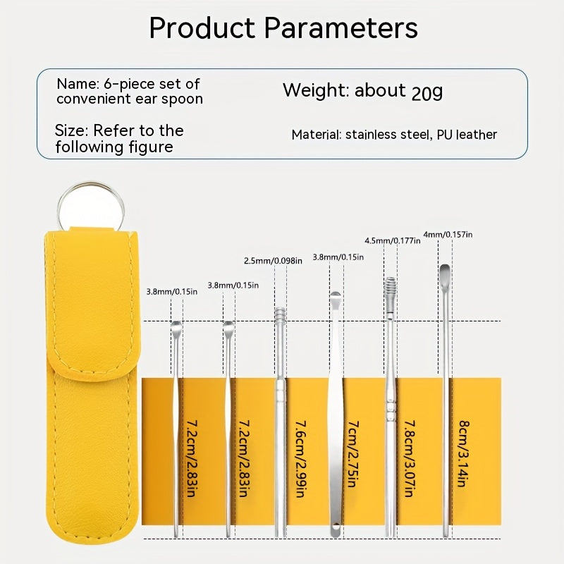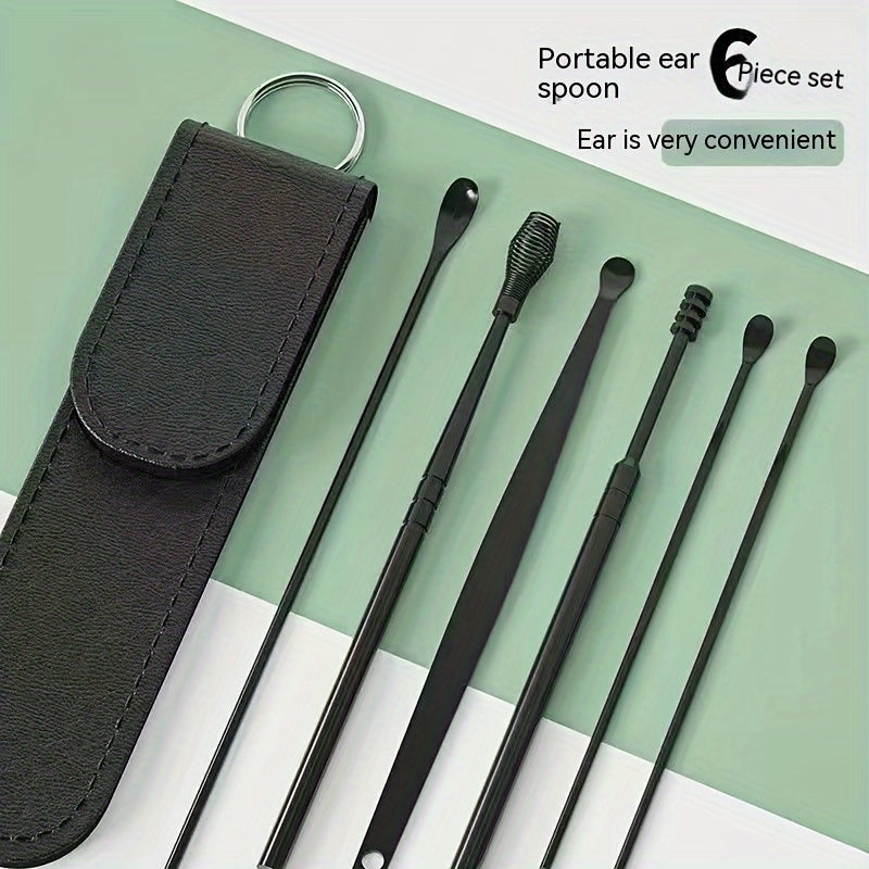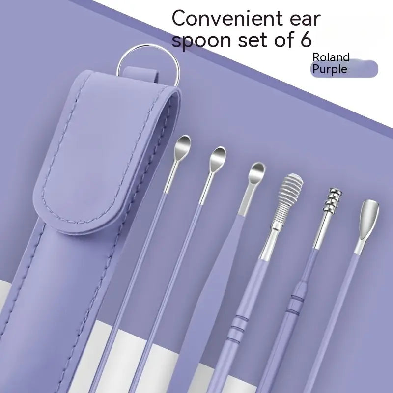 6-Piece Stainless Steel Ear Cleaning Spoons Set for Adults Spiral Design