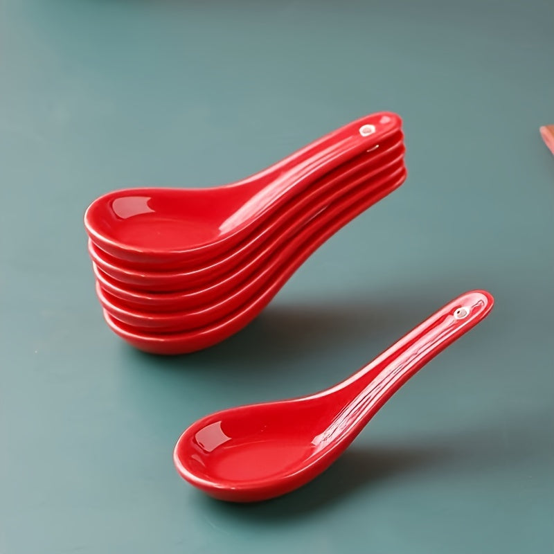 6-Piece White Ceramic Soup Spoon Set Microwave Oven Dishwasher Safe