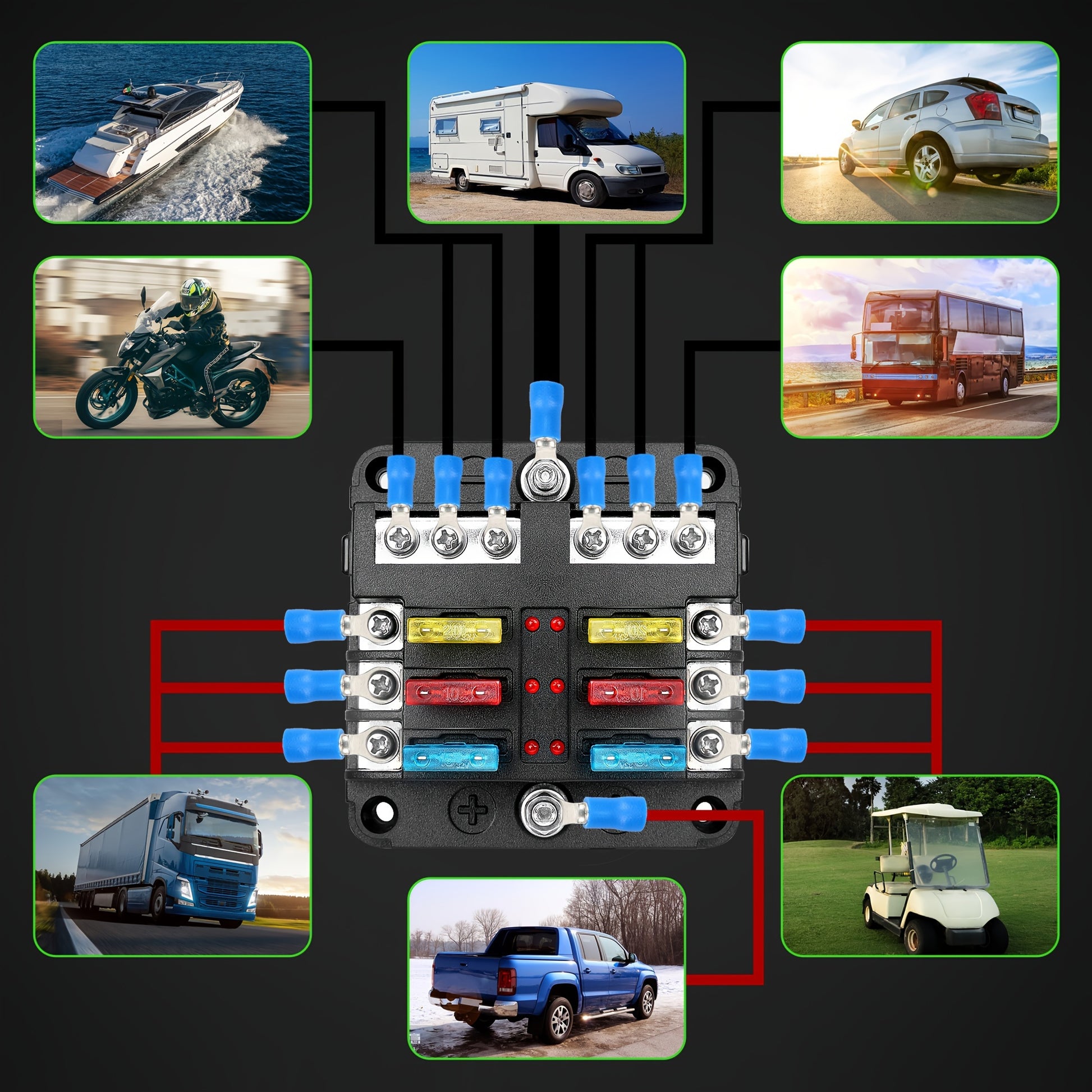 6-Way Fuse Box with LED Indicator Metal Automotive Marine Grade 12V