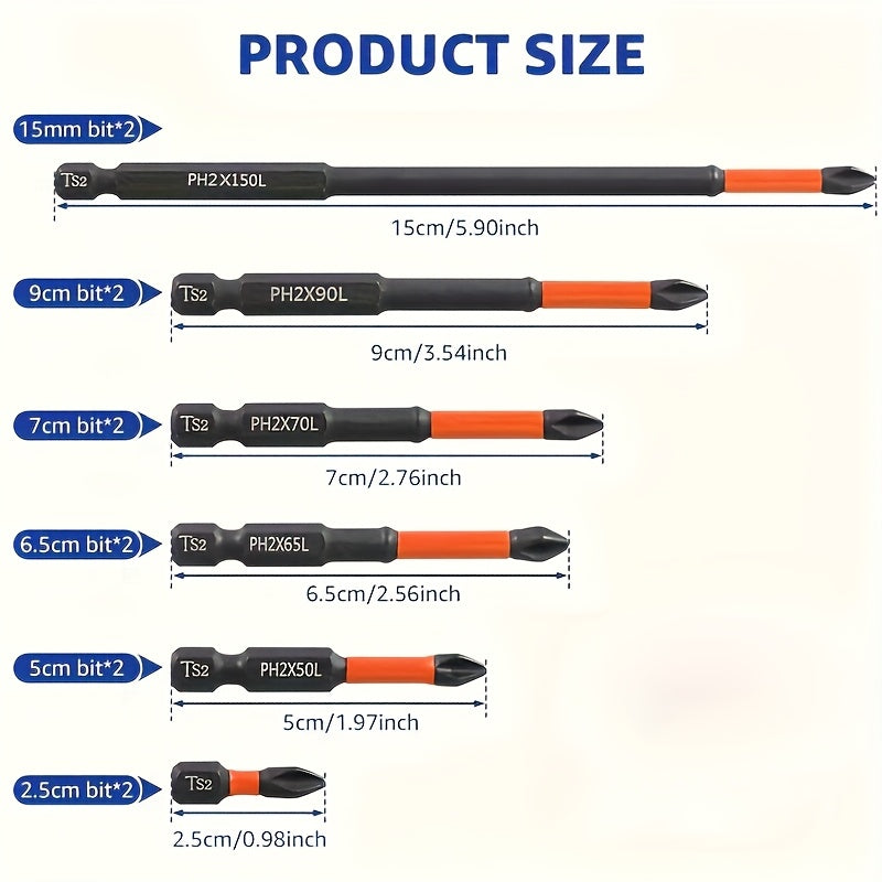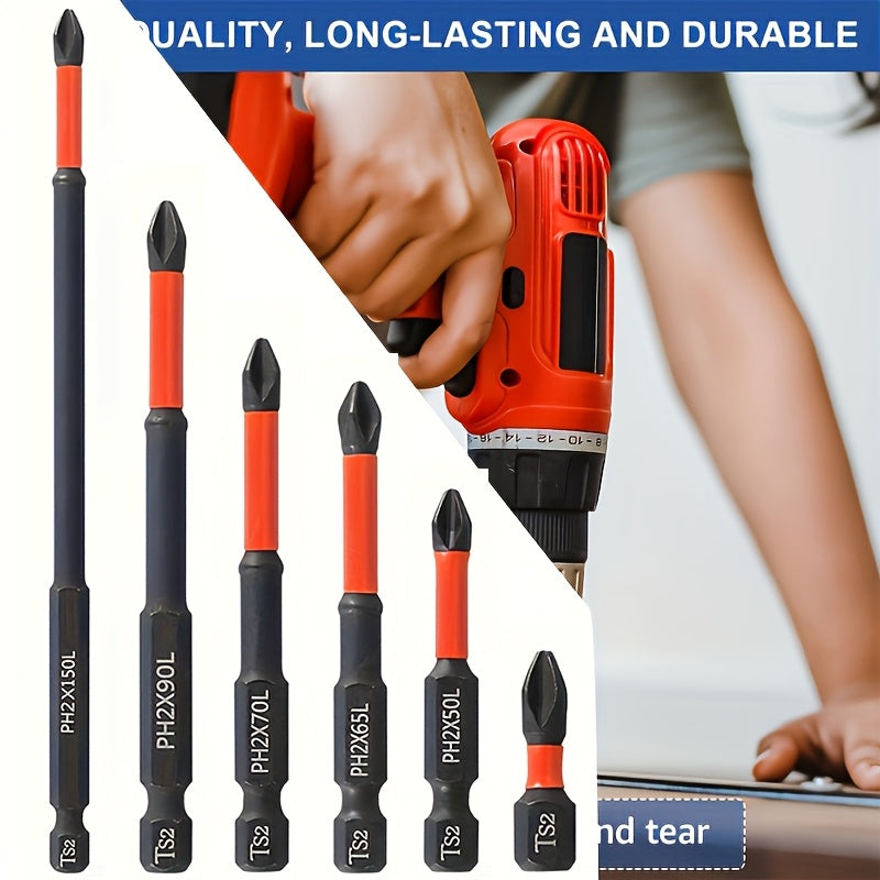 6Pcs Magnetic Anti-Slip Drill Bits S2 Steel 1/4 Inch Hex Set