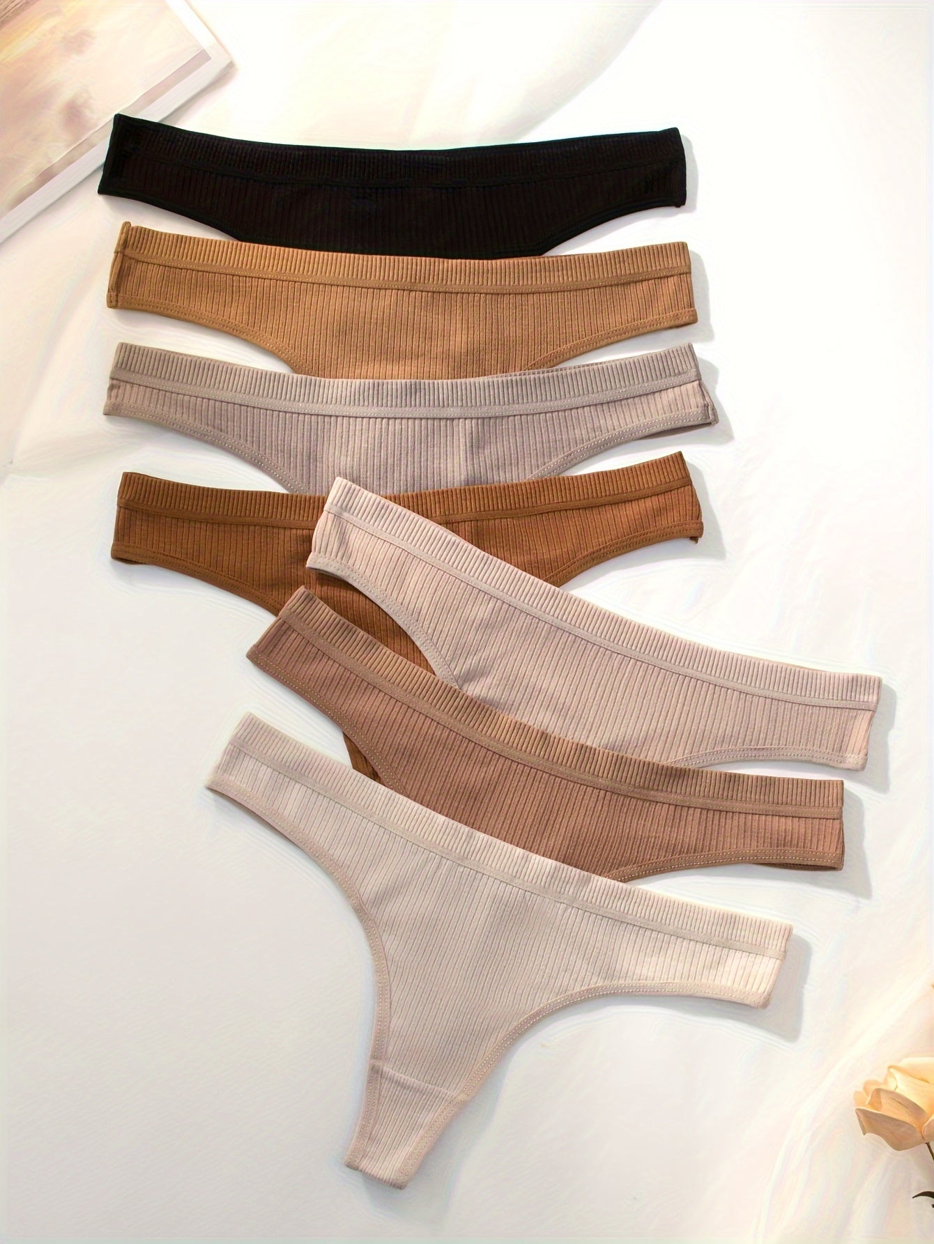 7-Pack Women's Ribbed Solid Color Thongs Polyester Blend Casual Underwear