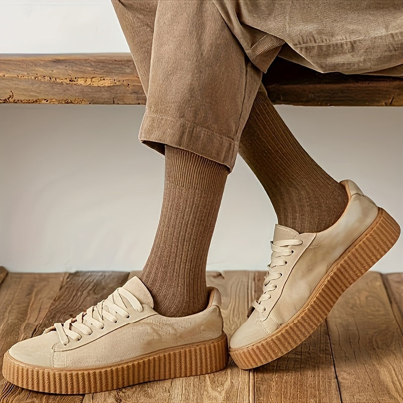 Men's Long Socks 7 Pairs Breathable Solid Color All Seasons Polyester Elastane