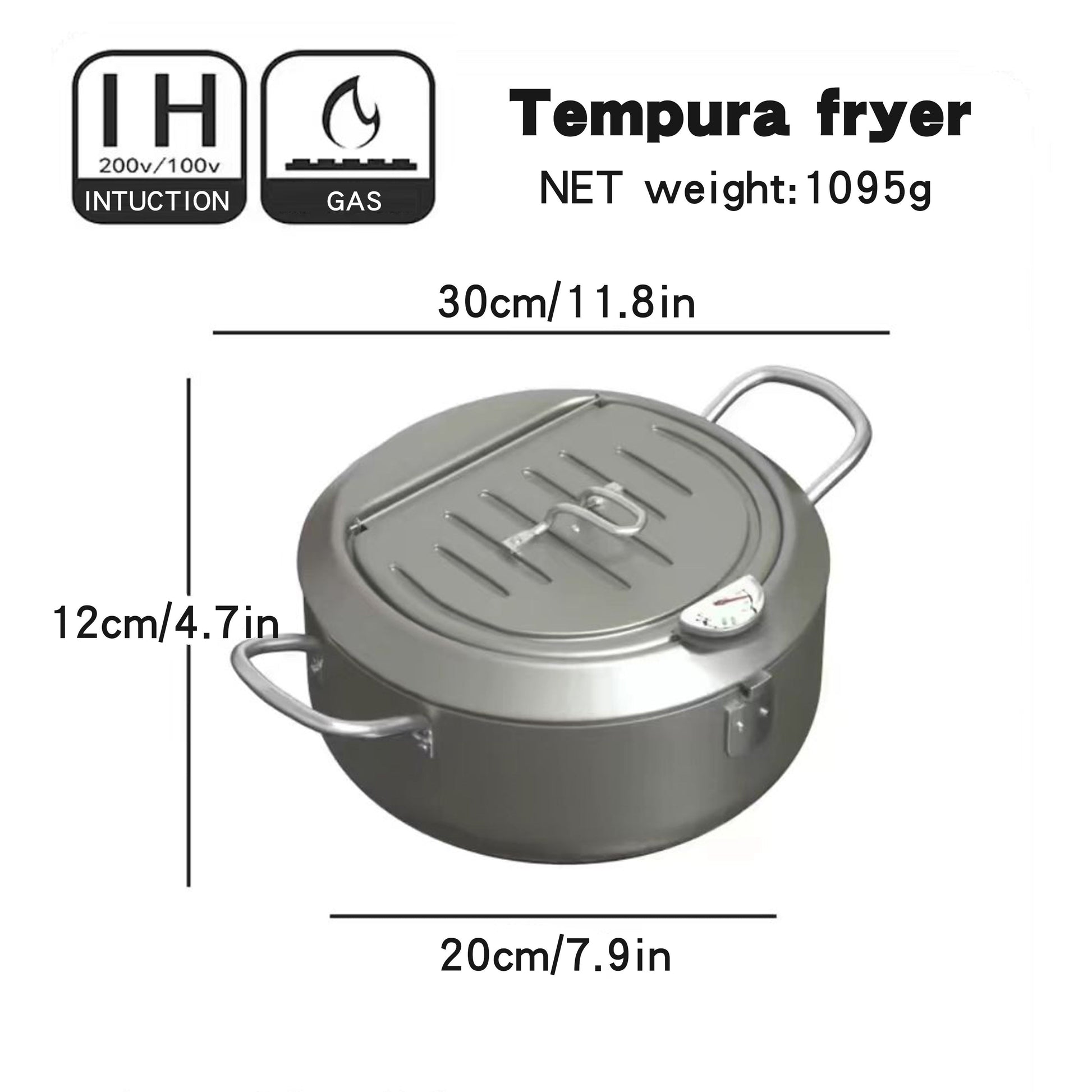 Stainless Steel Deep Fryer with Temperature Gauge and Splash Prevention for Gas and Induction