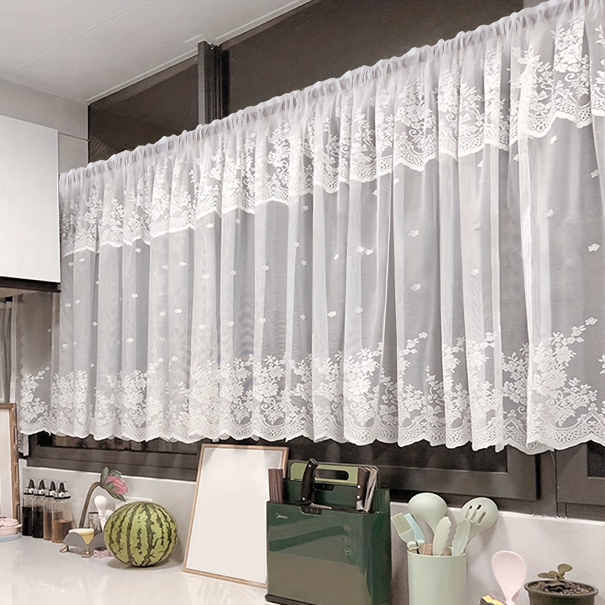 White Floral Lace Curtain with Rod Pocket for Living Room Bedroom Kitchen