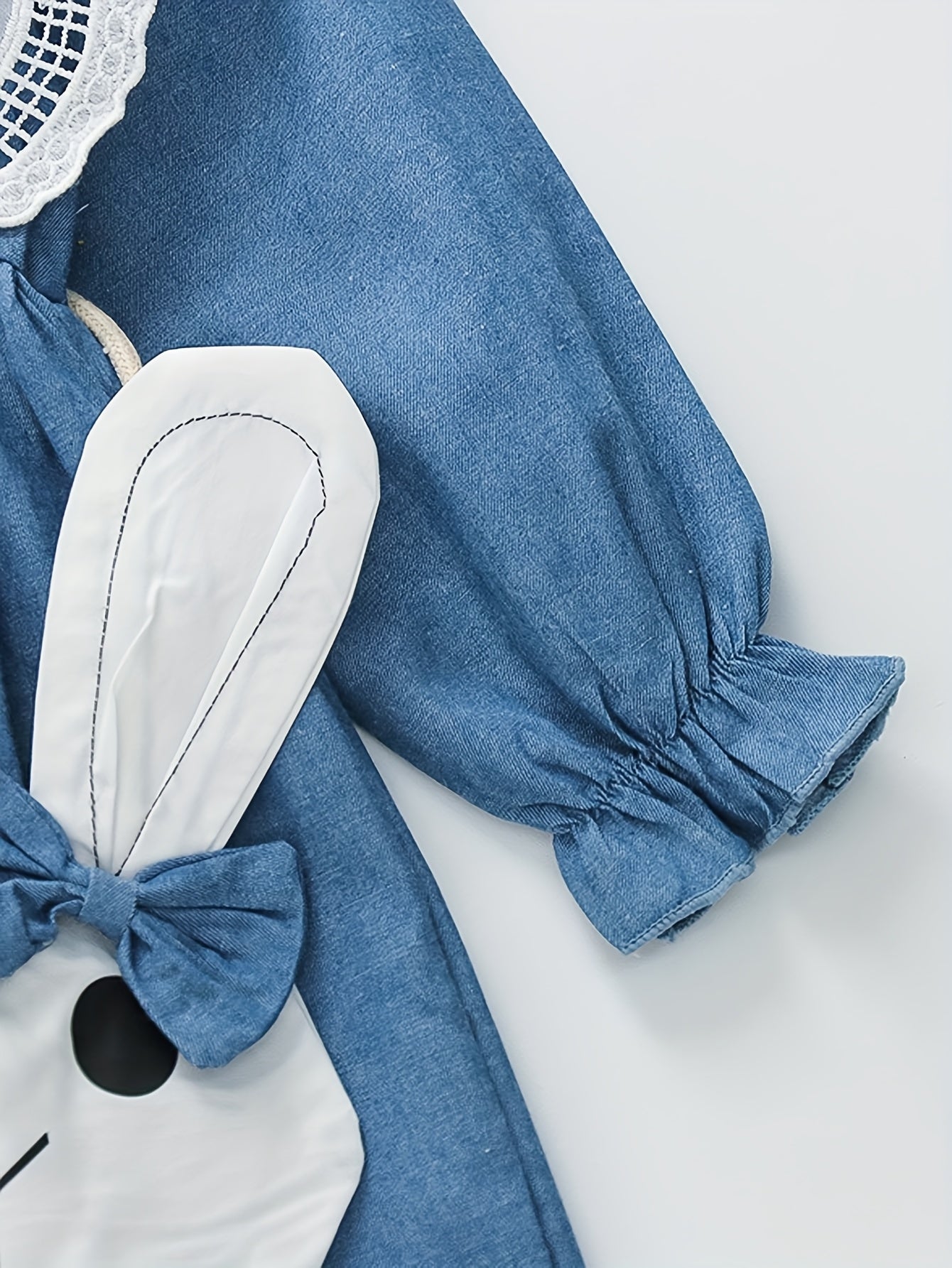 Girls' Cotton Dress with Bunny Accessory Long Sleeve Princess Style for Spring Fall