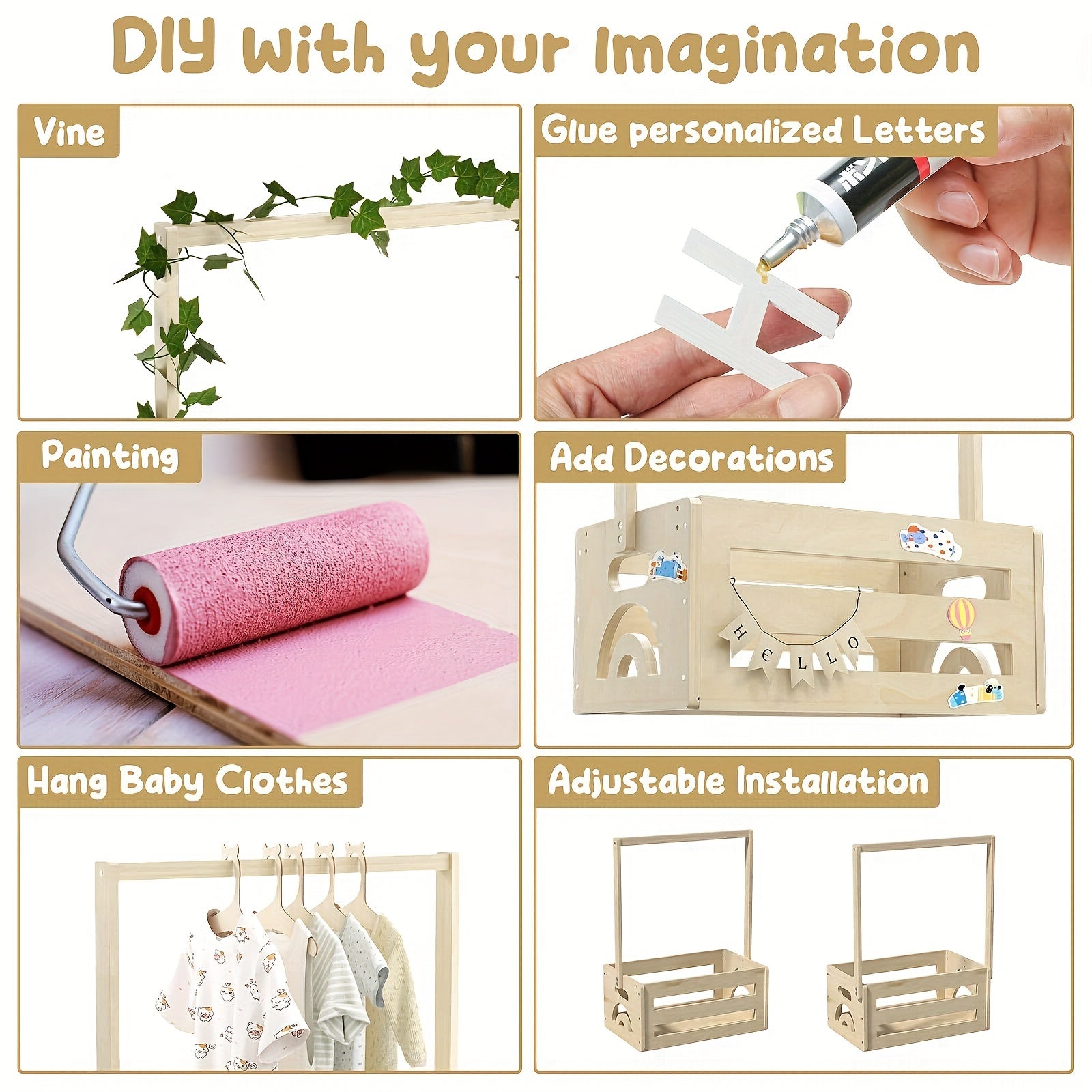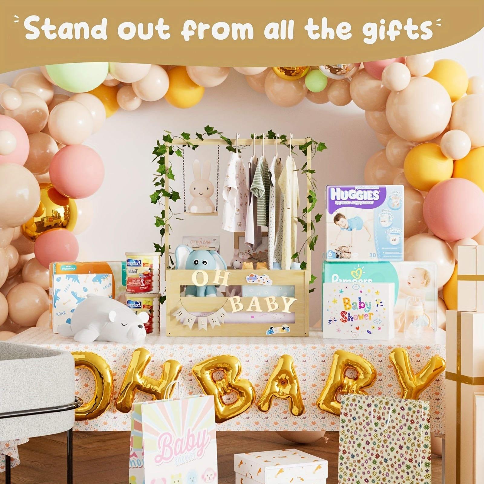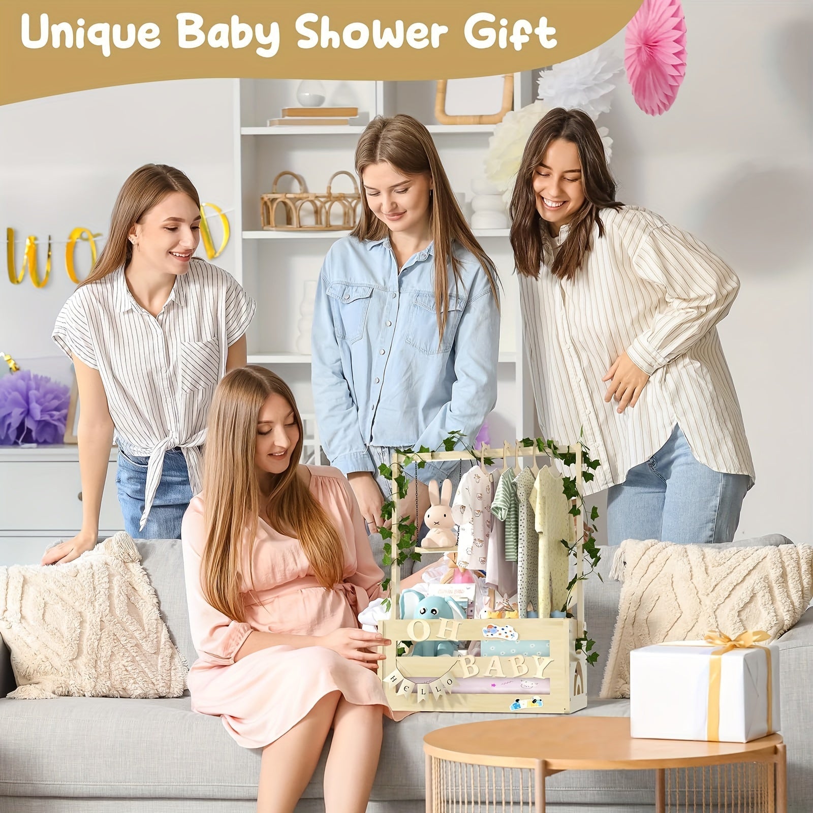 Baby Gift Basket for New Parents with Wood Accents and Vine Details
