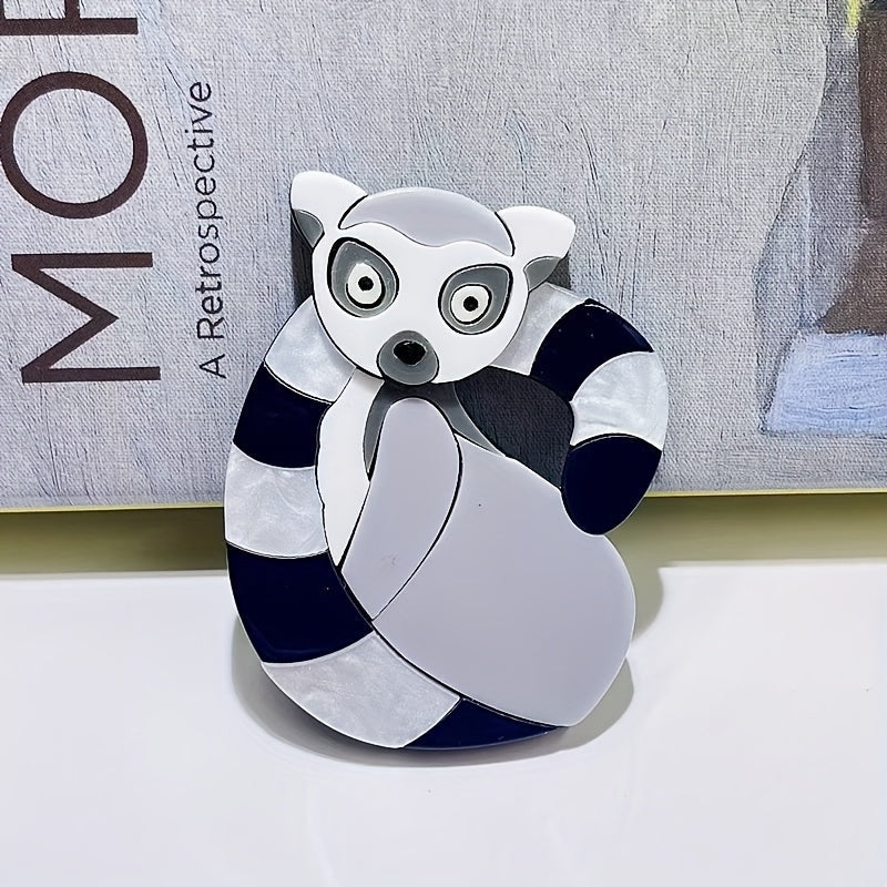 Cute Lemur Brooch Cartoon Animal Pin Acrylic Jewelry for Clothing Bags