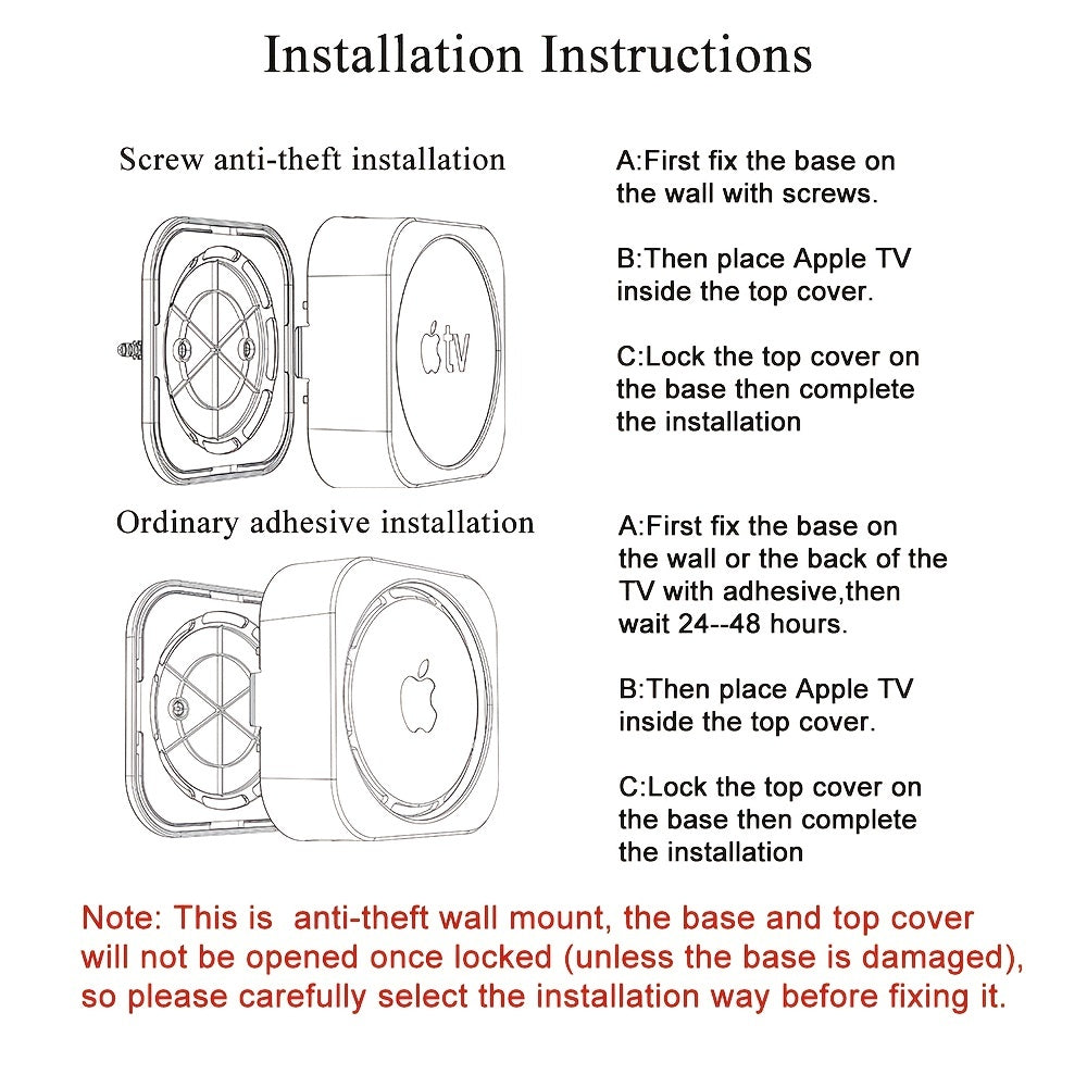 Wall-Mounted TV Rack for Apple TV 4K and HD Secure Anti-Theft Holder
