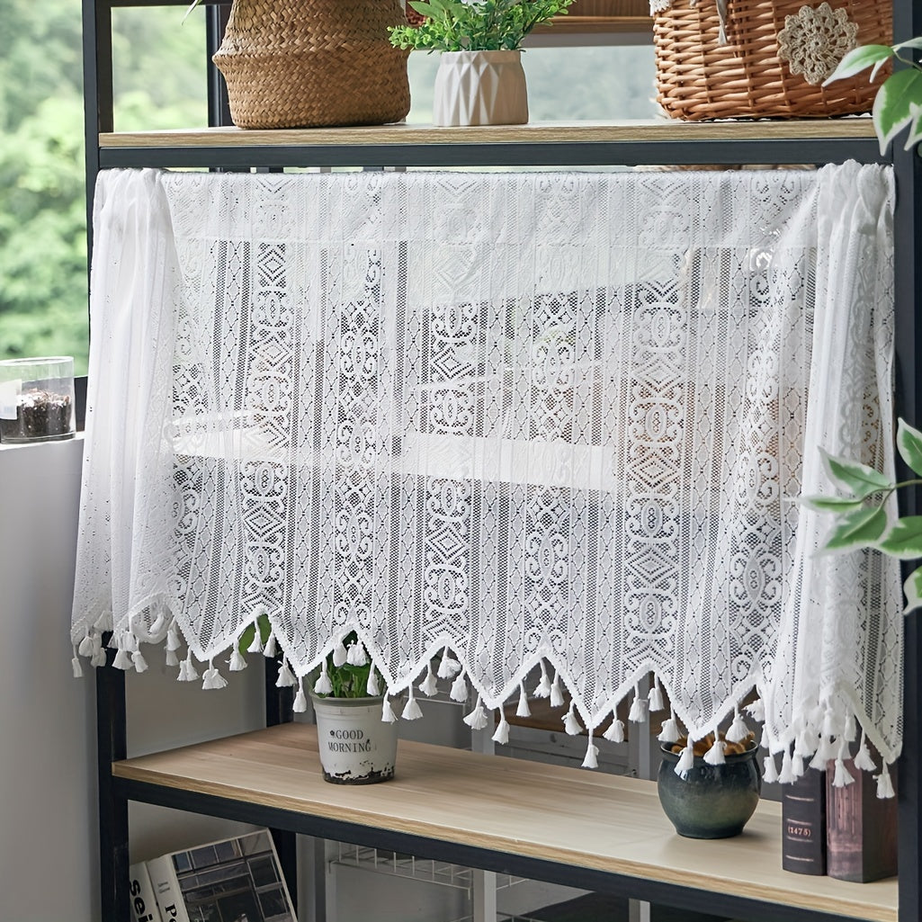 Boho Geometric Lace Tassel Cafe Curtain Tiers Polyester Semi-Sheer Thermal Insulated