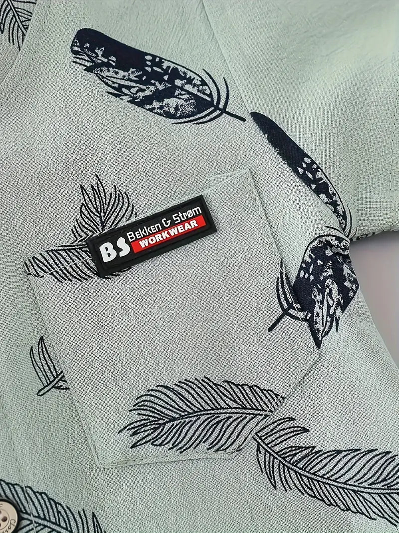 Baby Boys' Summer Cotton Casual Feather Pattern Shirt and Shorts Set