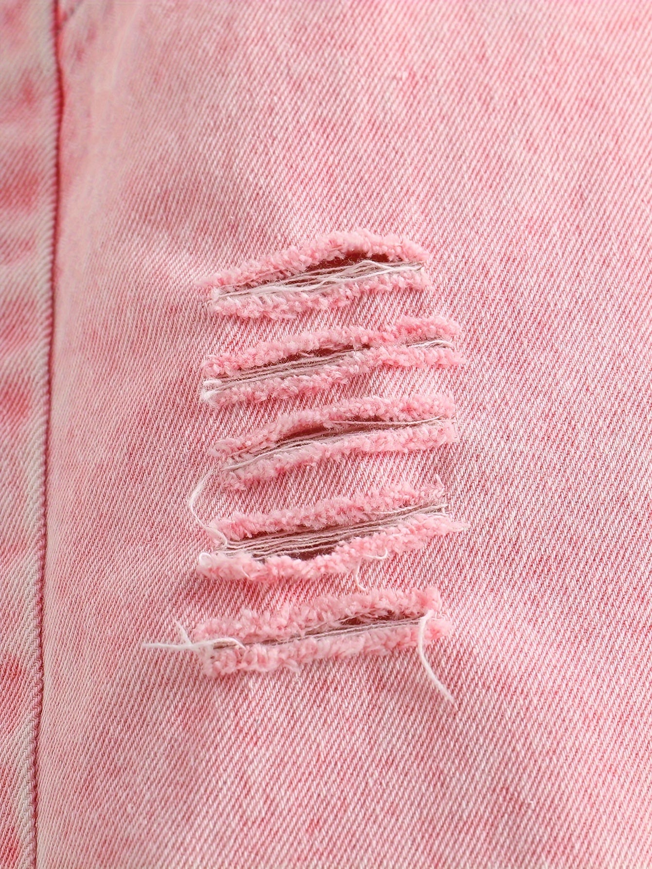 Baby Girl Denim Overalls with Alphabet Pattern Ripped Details Cotton Blend Spring Fall