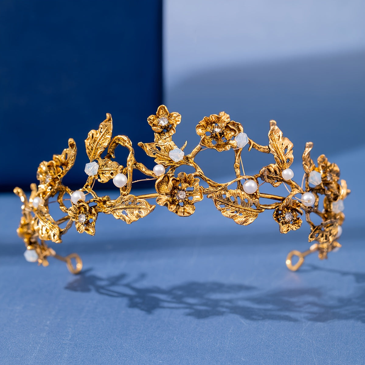 Leaf-Shaped Baroque Style Crown Headband for Weddings Proms and Parties