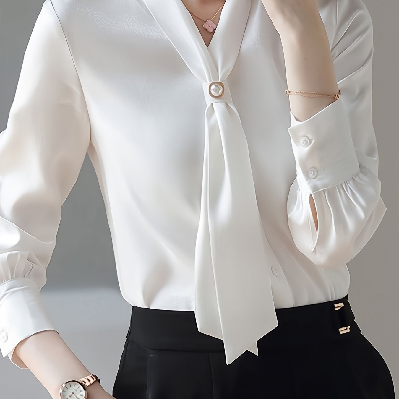 Beaded V-Neck Blouse for Women with Long Sleeves and Solid Color