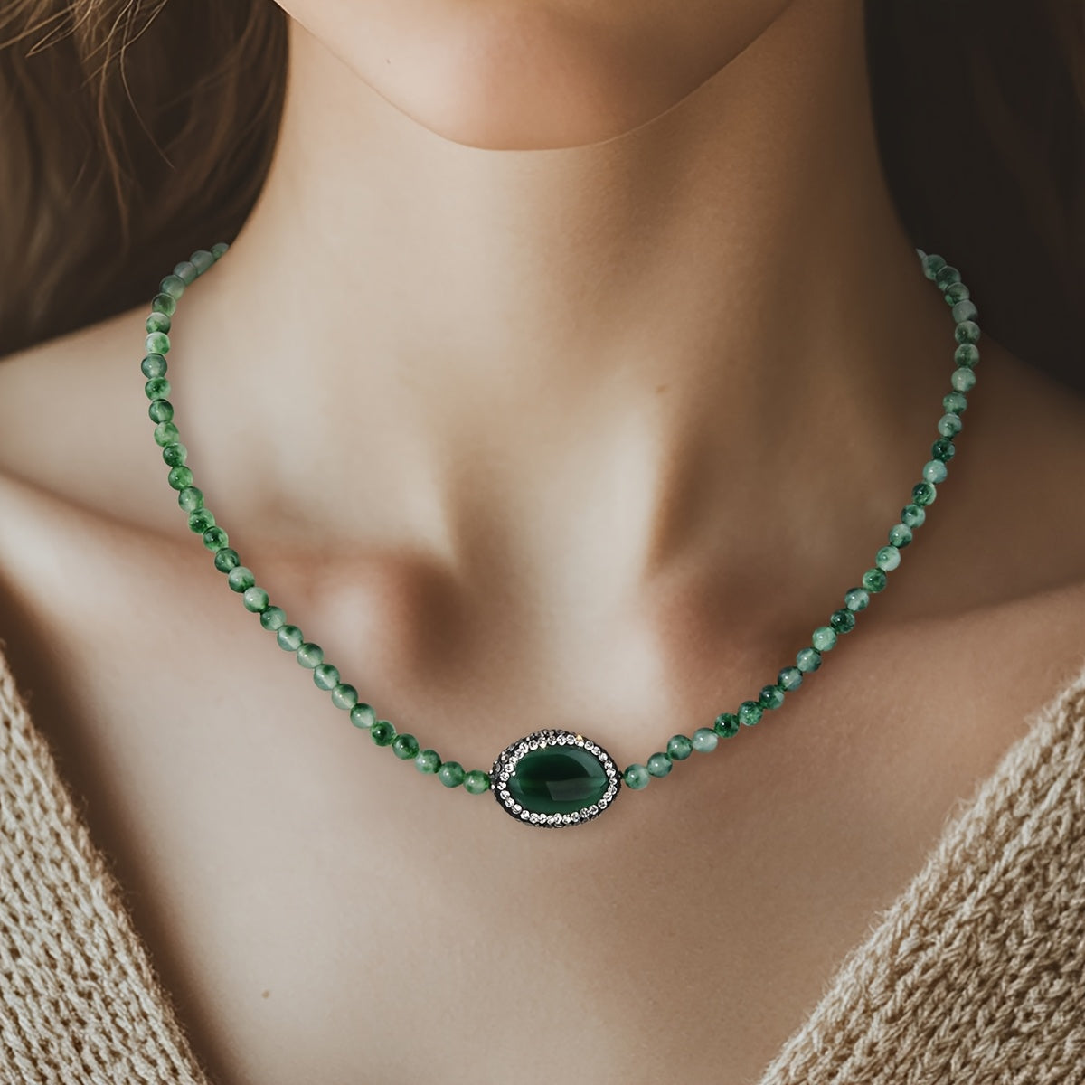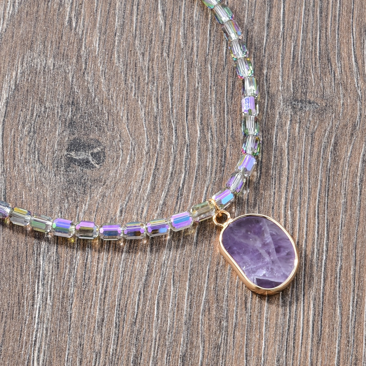 Beaded Necklace with Amethyst Pendant for Women Jewelry Gift