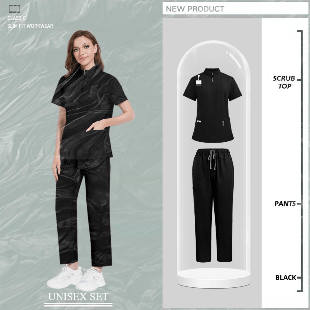 Nursing Uniforms for Hospital and Salon Short Sleeve Surgical Clothing with Zipper and Collar