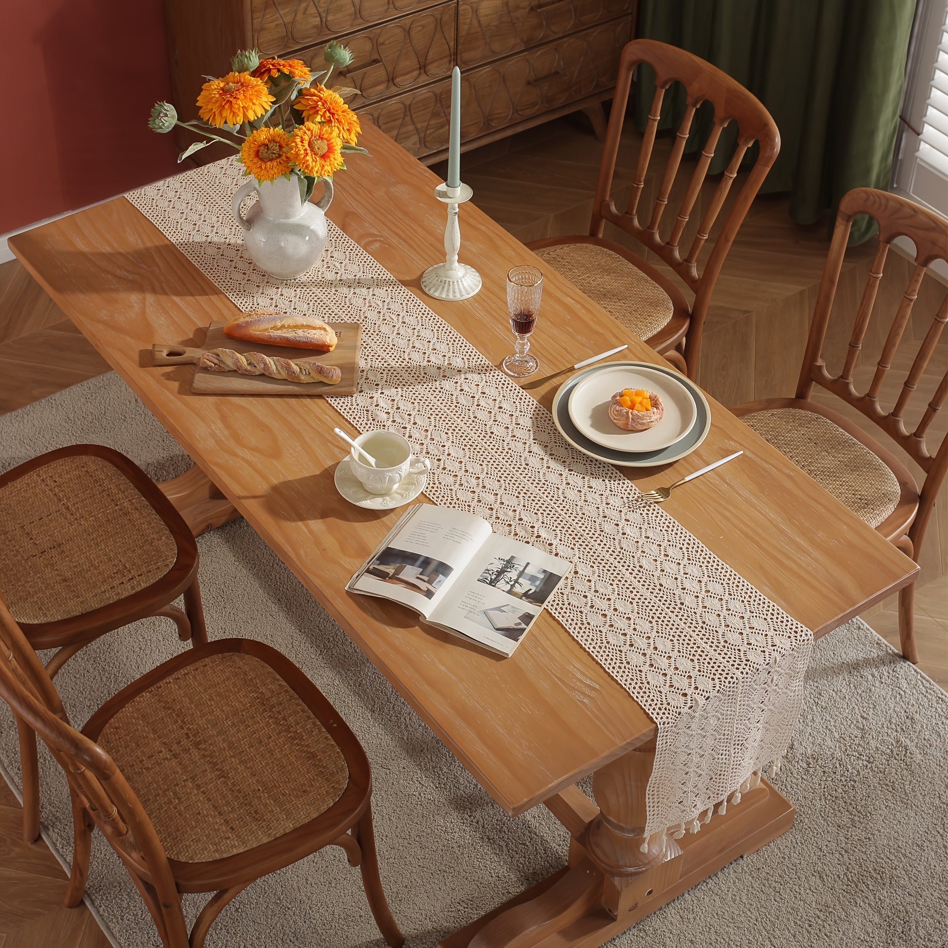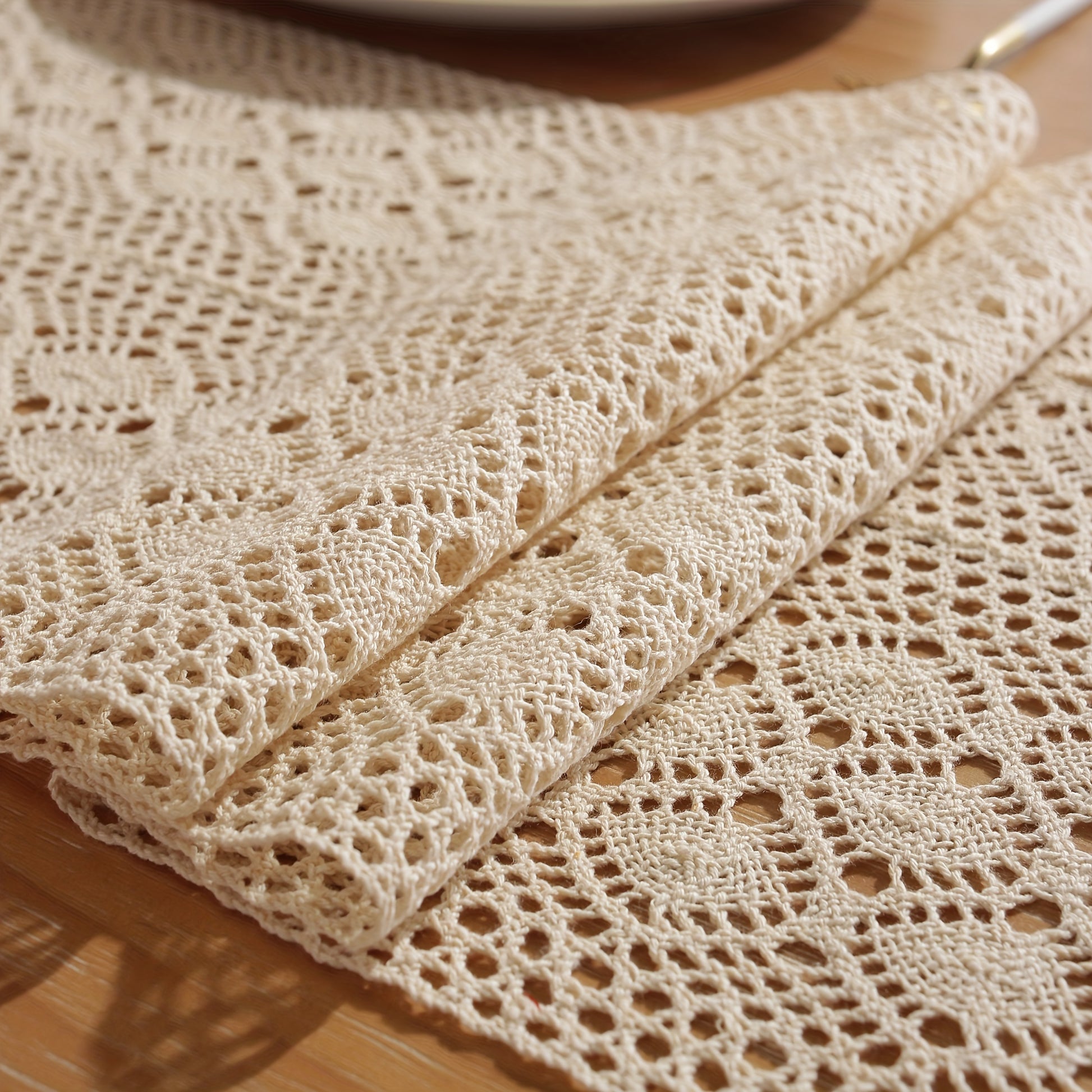 Beige Cotton Linen Crochet Table Runner with Geometric Rhombus Pattern