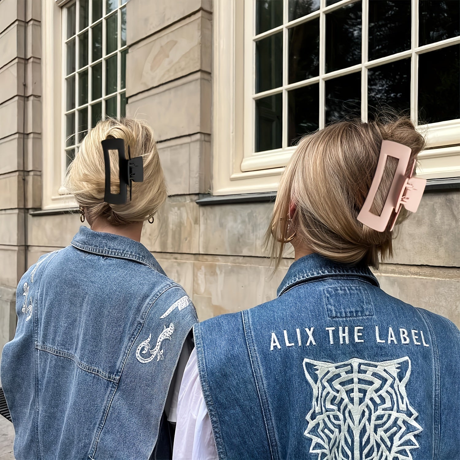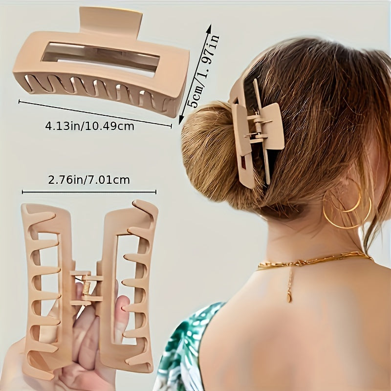 Set of 4 Large Square Hair Claw Clips for Women and Girls Solid Color Hollow Design