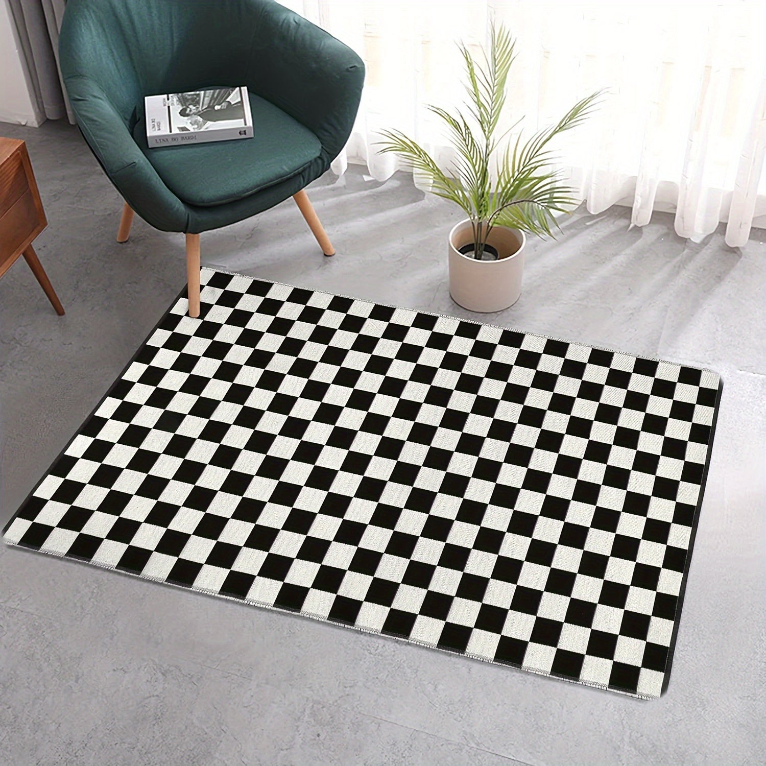 Black and White Checkered Carpet Non-Slip Polyester Indoor Floor Mat