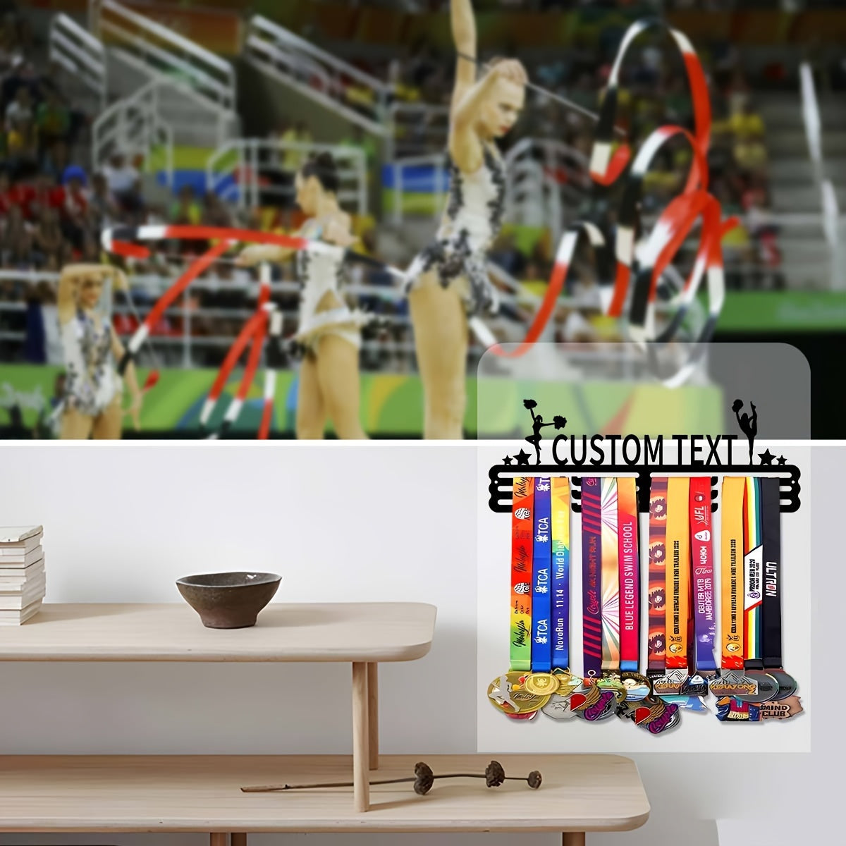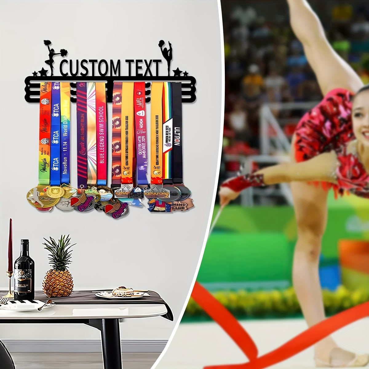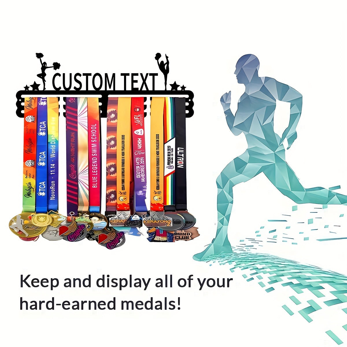 Black Art Deco Style Wall Mount Medal Display Rack with Hooks for Home and Outdoor Decor