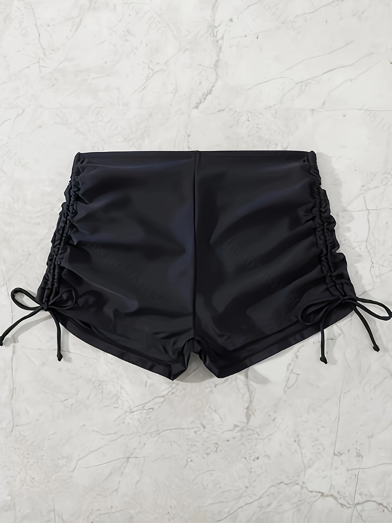 Women's Black High-Waisted Drawstring Swim Shorts with Stretch Fabric