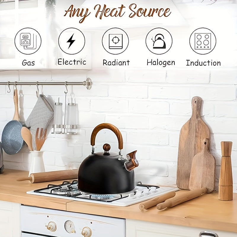 Black Stainless Steel Whistling Tea Kettle Cast Iron Stovetop Indoor Outdoor Camping