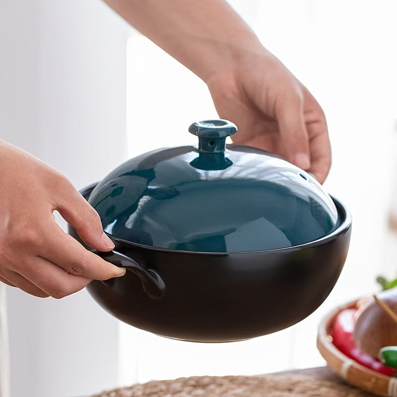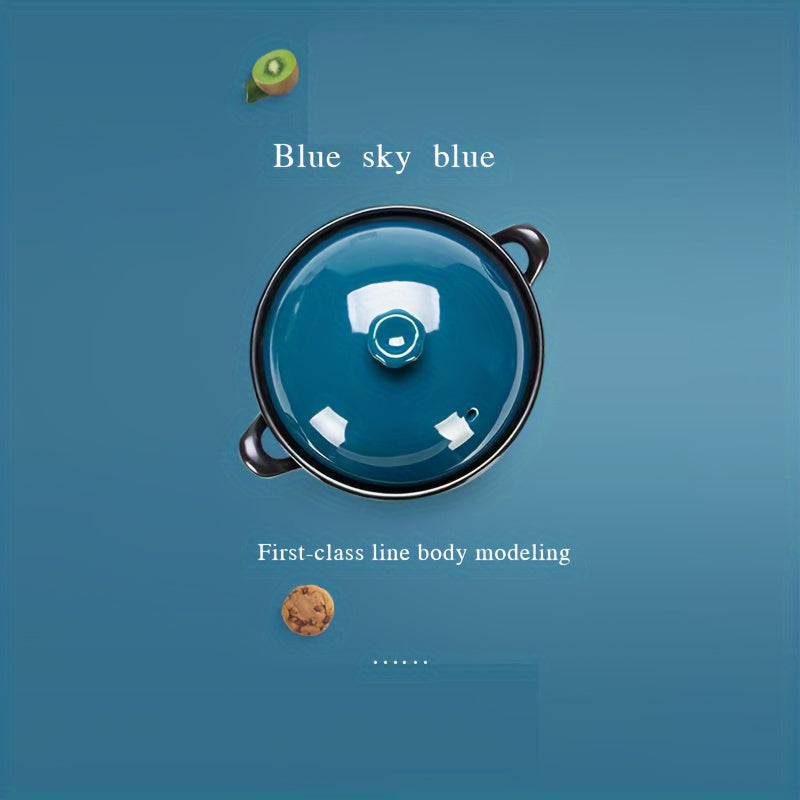 Ceramic Casserole Dish with Blue Lid 2000ml 67oz for High-Temperature Cooking